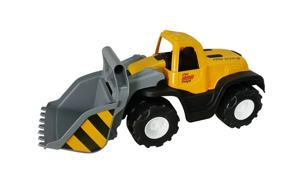 Robusten bager kombinacije rumeno, sive in črne barve velikosti 68 cm ima premično kiblo.