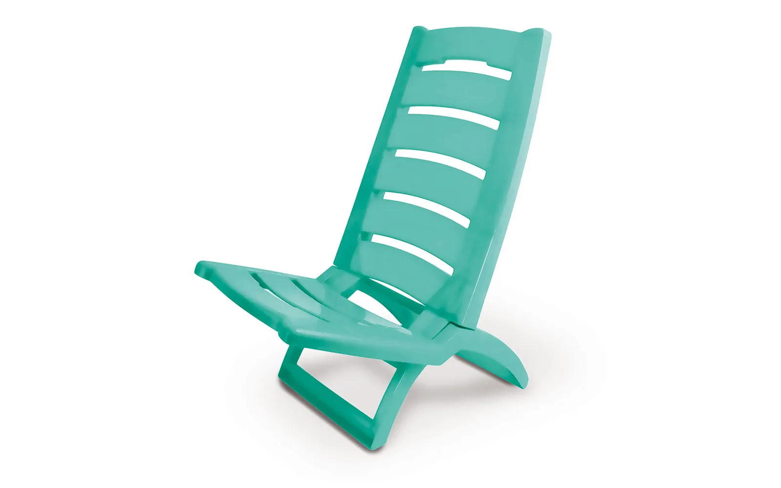 Uporaben zložljiv pvc stol turkizno zelene barve, ki ima nosilnost do 100 kg za posedanje na toplem soncu ali prijetni senci, ko sonce pripeka preveč močno. Dimenzije sestavljenega stola: dolžina: 37,5, višina: 65 cm, globina: 55 cm ter dvignjenost od tal: 27 cm. Izdelano v Italiji.Catas tested.