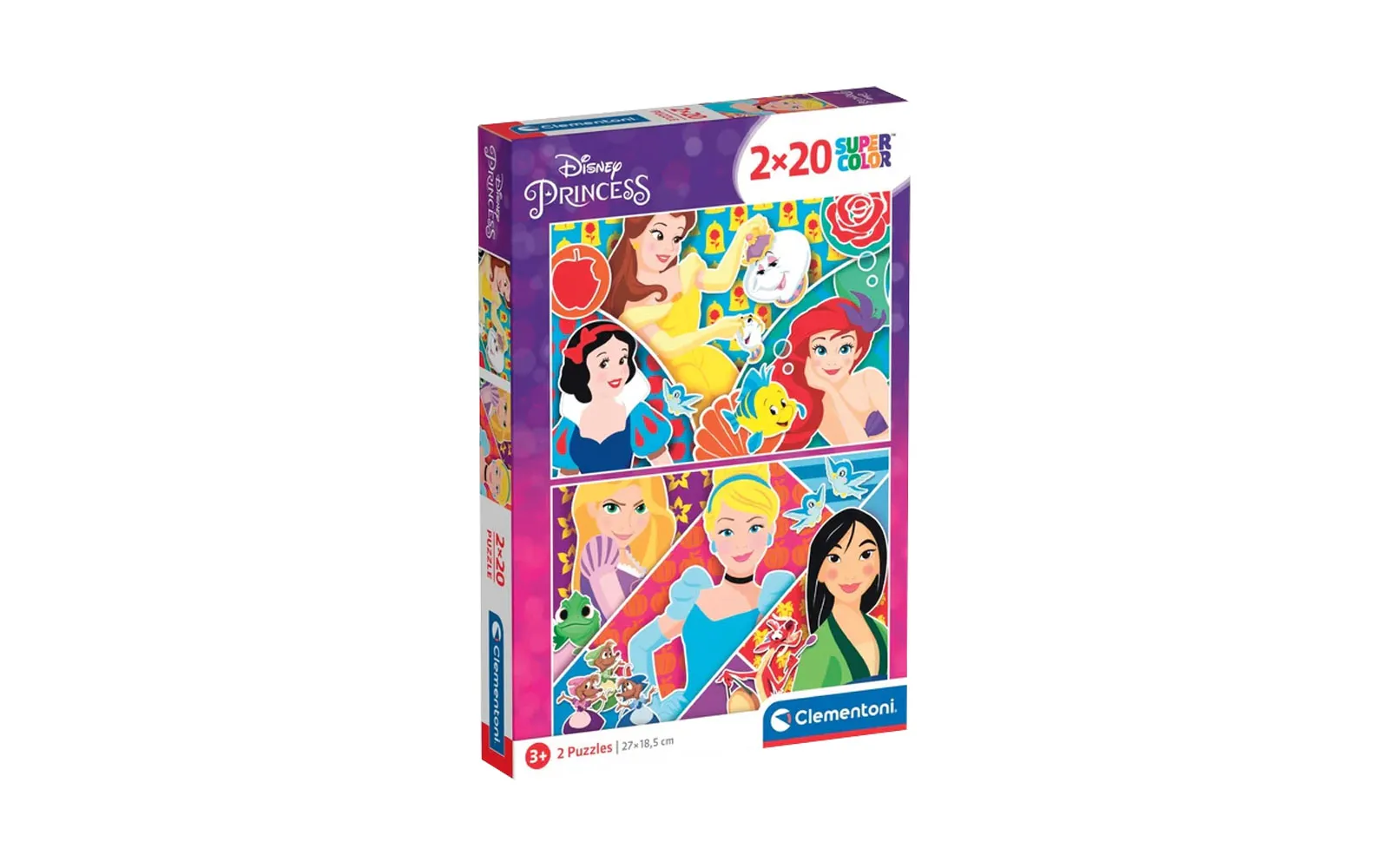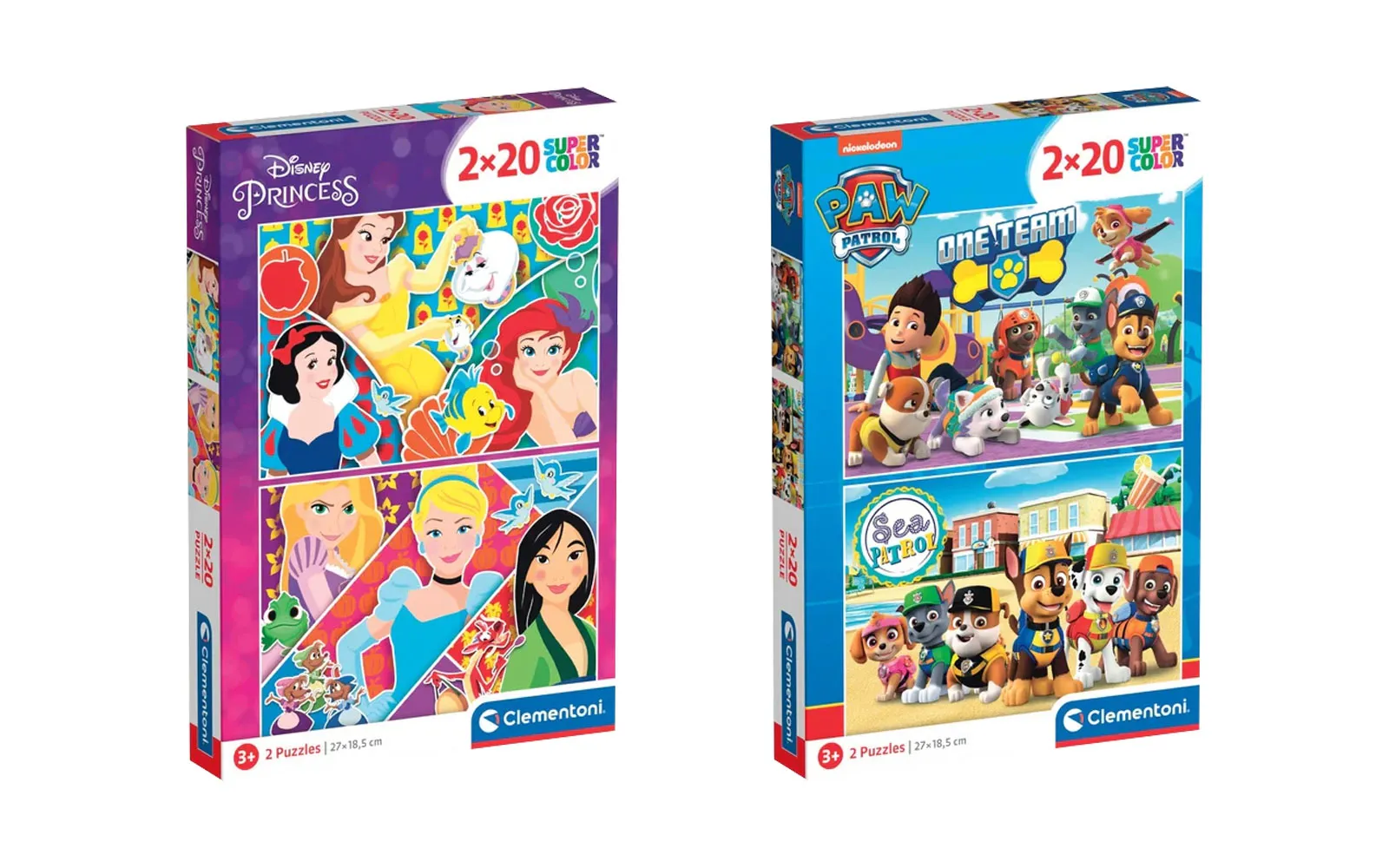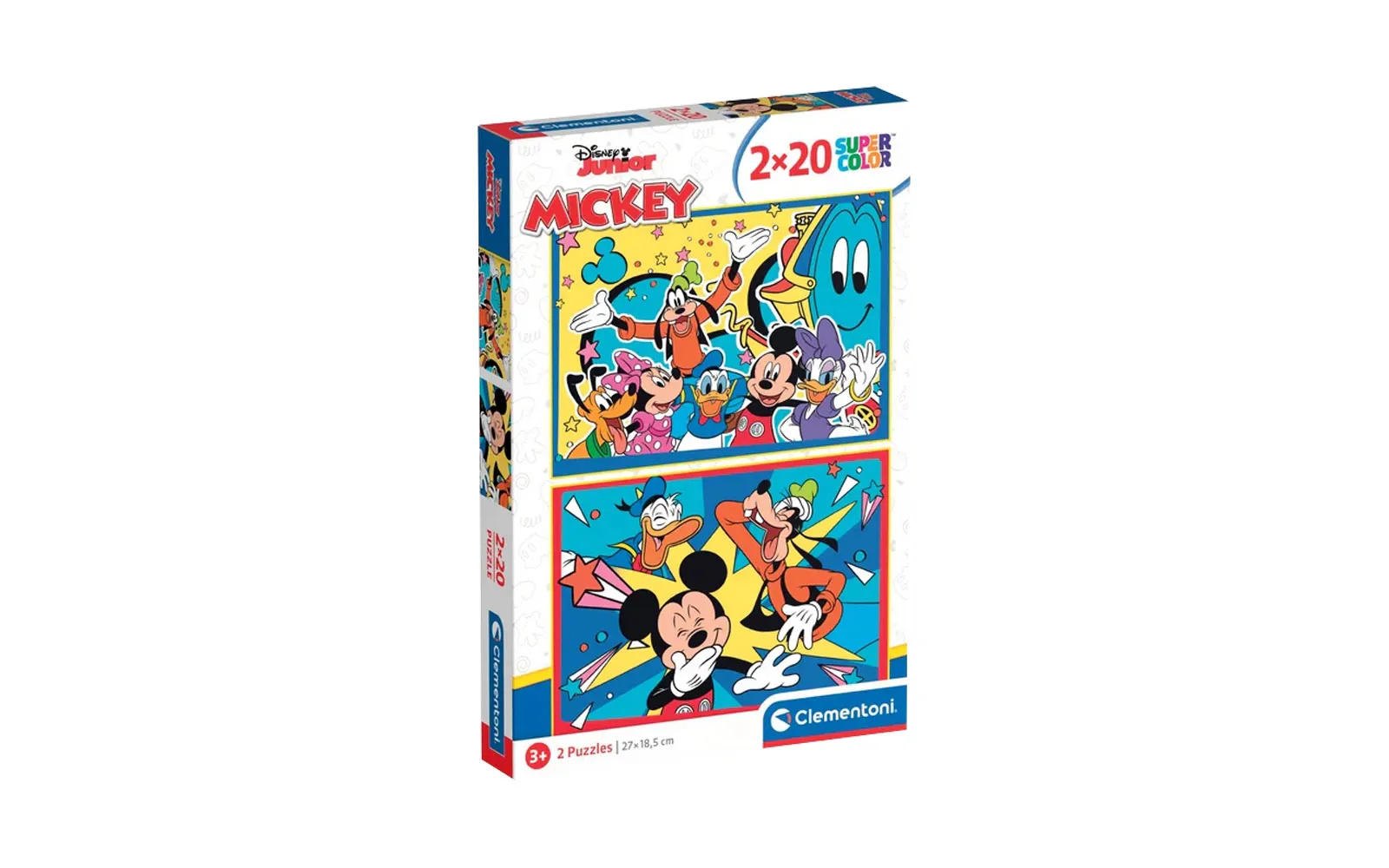 Dve sestavljanki v eni embalaži s po 20 sestavnimi deli. Priporočamo otrokom od 3. do 4. leta starosti. Sestavljanke Supercolor Clementoni spremljajo otroka v vseh fazah razvoja in mu pomagajo razvijati ročne spretnosti ter sposobnost opazovanja. Kakovost materialov in posebna tehnika tiskanja zagotavljata vedno lepe, žive in jasne barve za igro, ki ji ni nikoli konca.