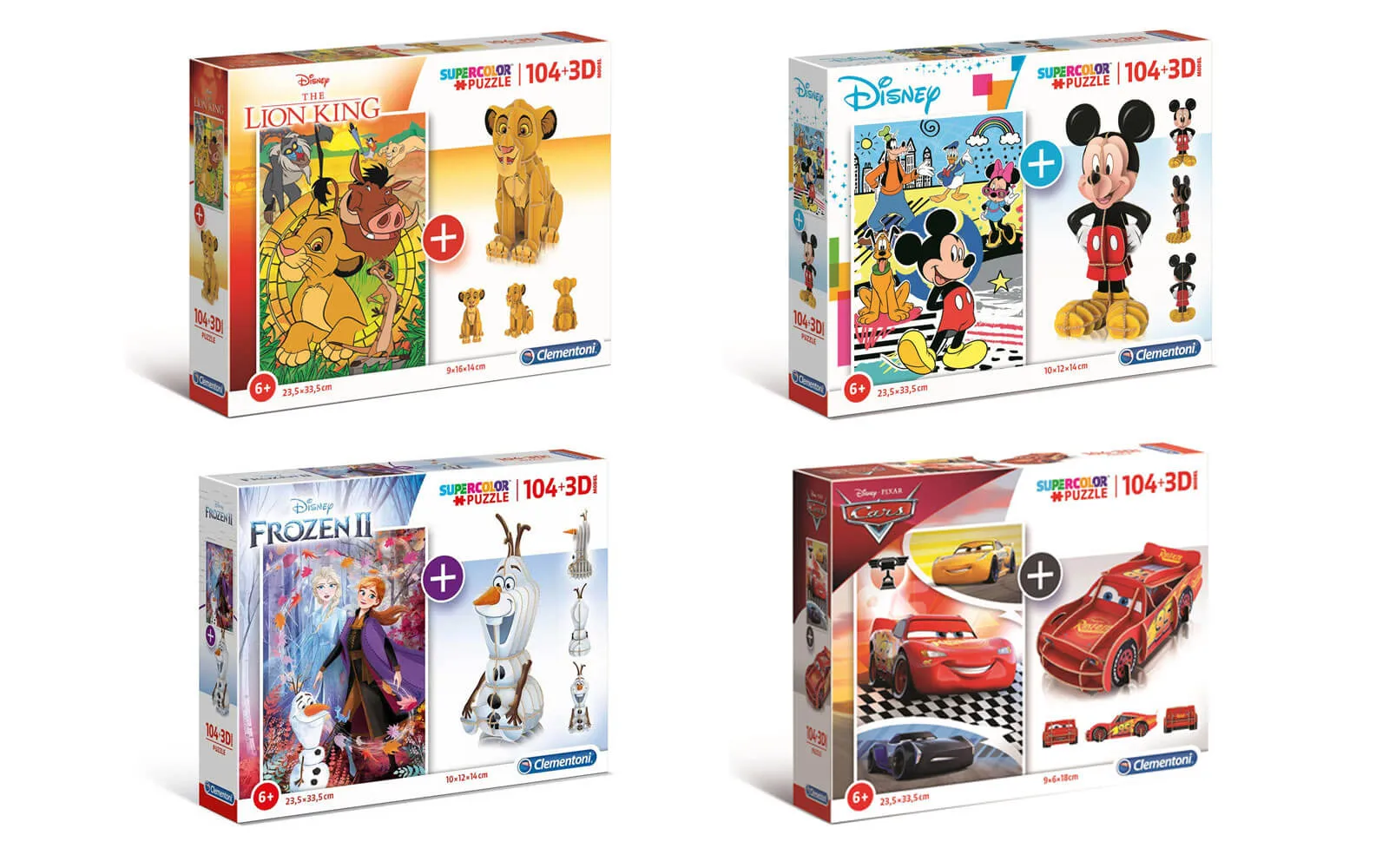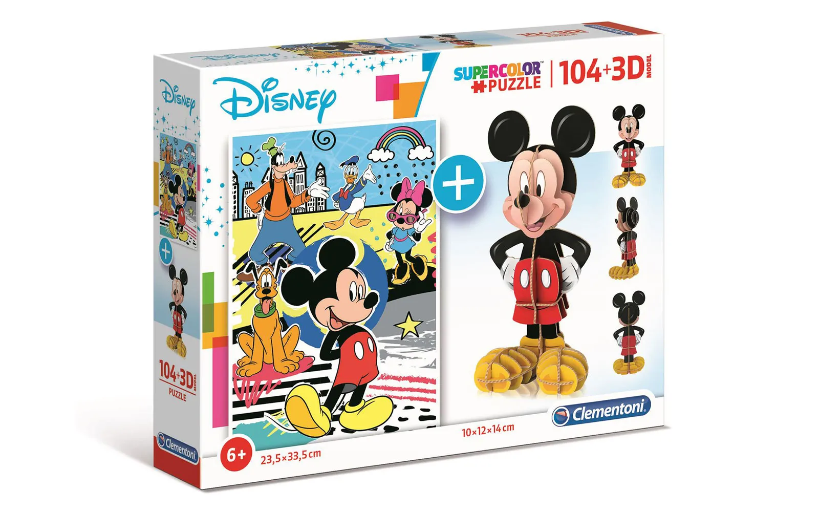 Set vsebuje klasično sestavljanko s 104 sestavnimi deli ter 3D model za sestaviti. Na voljo je več različnih motivov.