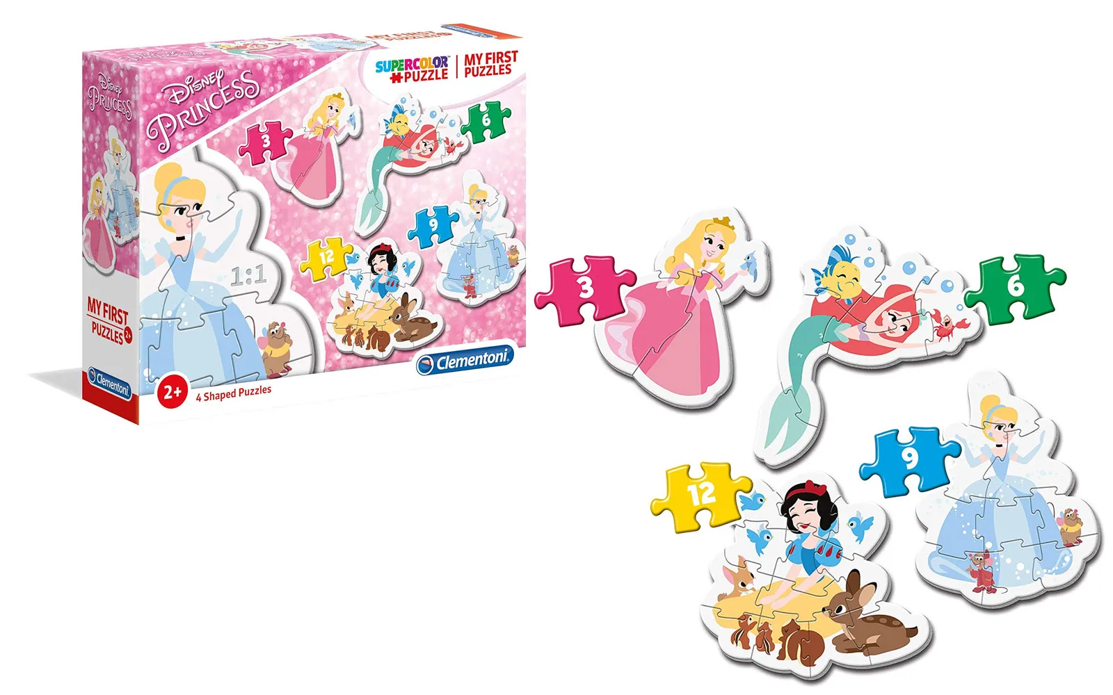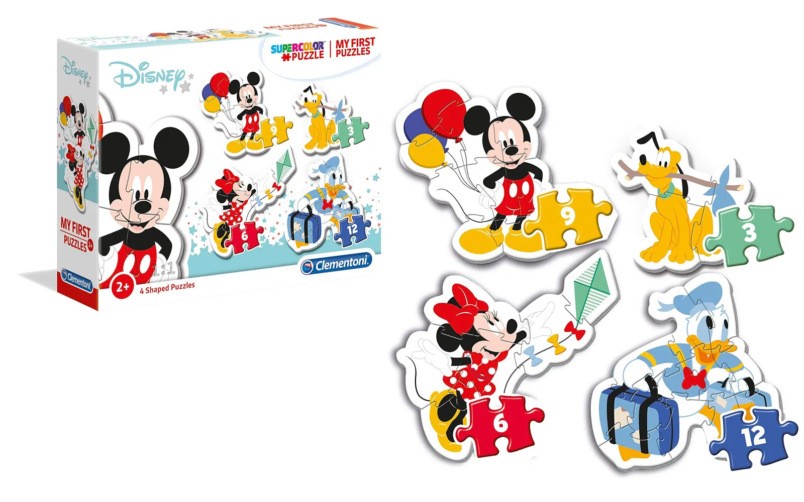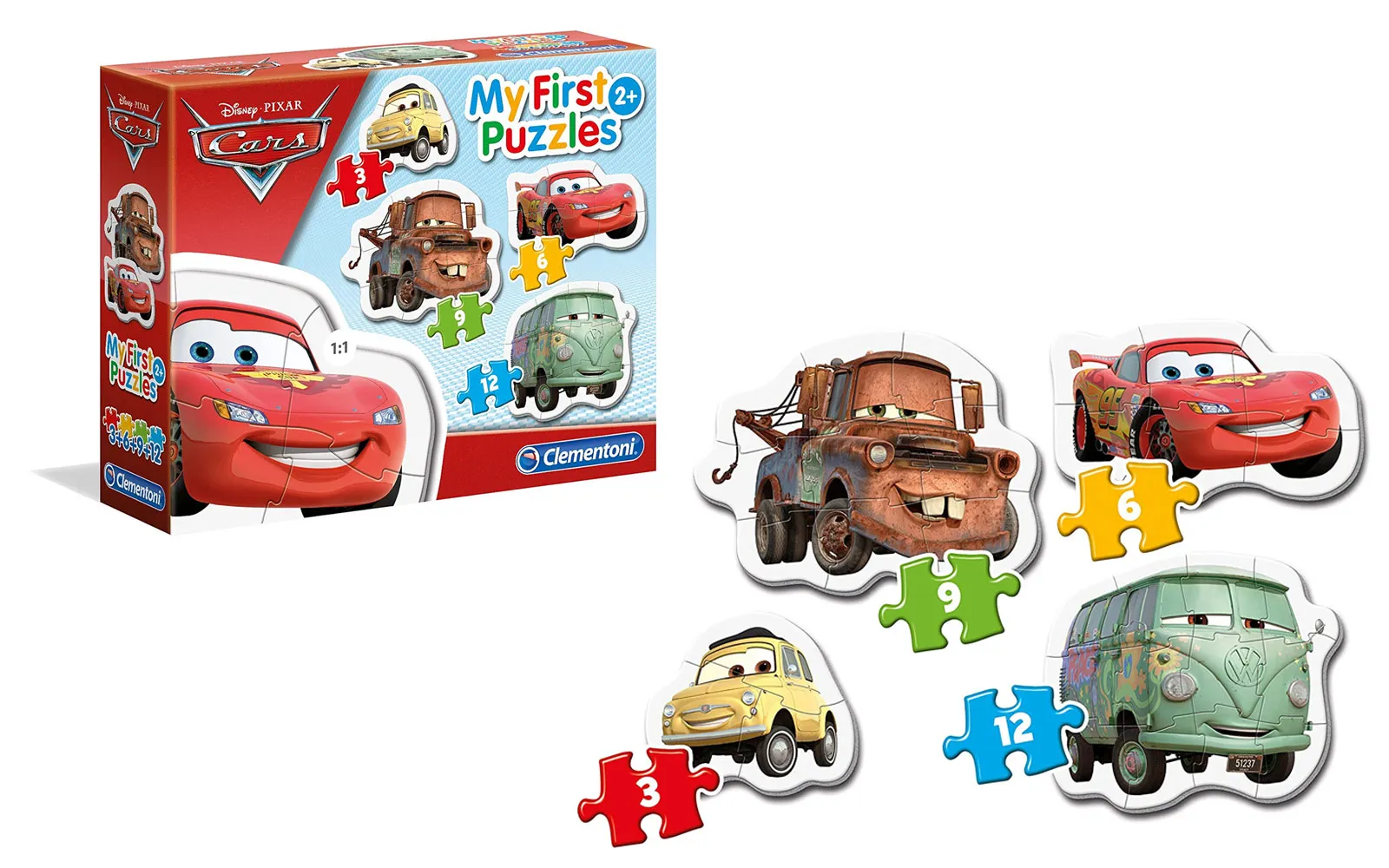 Puzzle baby moje prve vsebujejo enostavne in prisrčne sestavljanke za naše najmlajše. Vključene so 4 ločene sestavljanke, ki imajo različno število delov (od 2 do 12). Puzzle so več kot primerne za prvo sestavljanko otroka. Na voljo z motivi Cars, Peppa Pig, Vozila, 44 Cats, Animals, Princess ter Mickey Mouse.