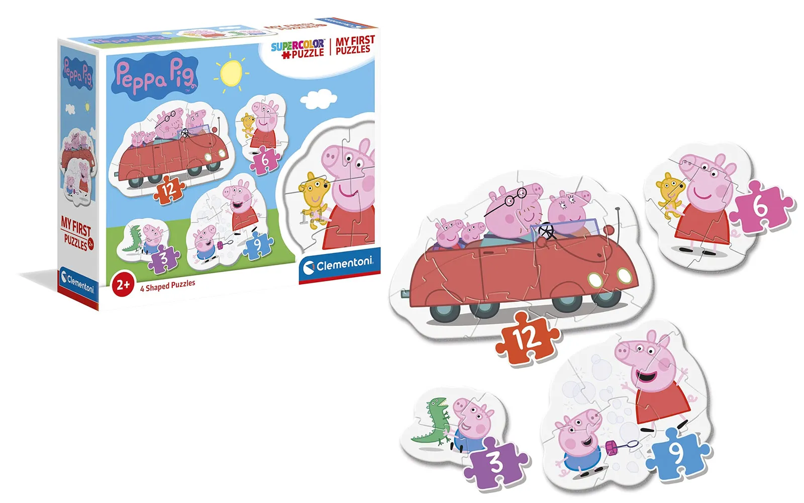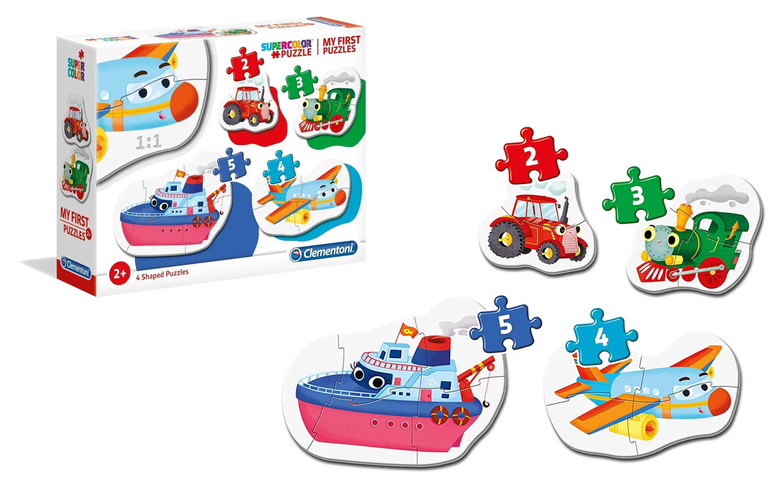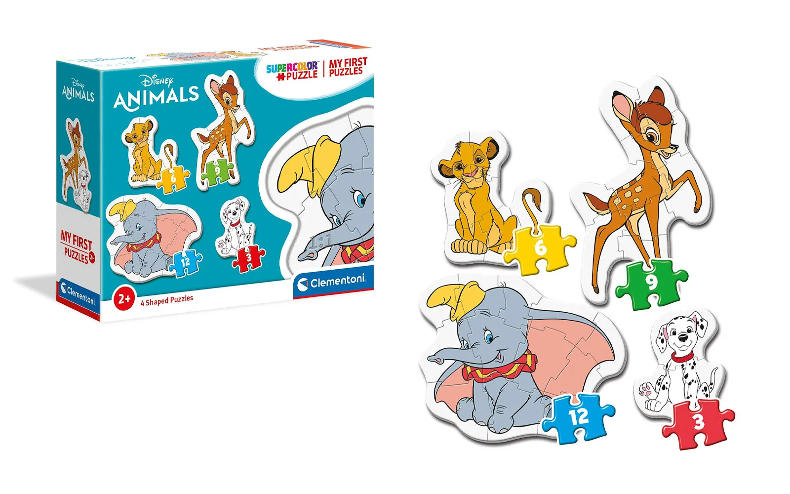 Puzzle baby moje prve vsebujejo enostavne in prisrčne sestavljanke za naše najmlajše. Vključene so 4 ločene sestavljanke, ki imajo različno število delov (od 2 do 12). Puzzle so več kot primerne za prvo sestavljanko otroka. Na voljo z motivi Cars, Peppa Pig, Vozila, 44 Cats, Animals, Princess ter Mickey Mouse.
