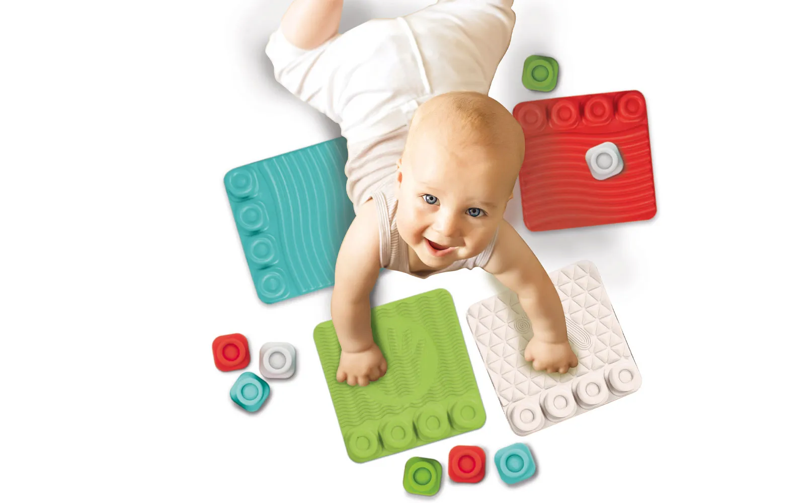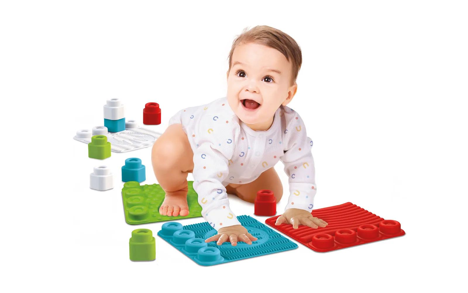 Clemmy mehke podloge in kocke za vaše najmlajše. Vključenih je 8 mehkih kock in 4 podloge z različnimi motivi in reliefi. Primerne so za otroke od 6. do 36. meseca starosti.