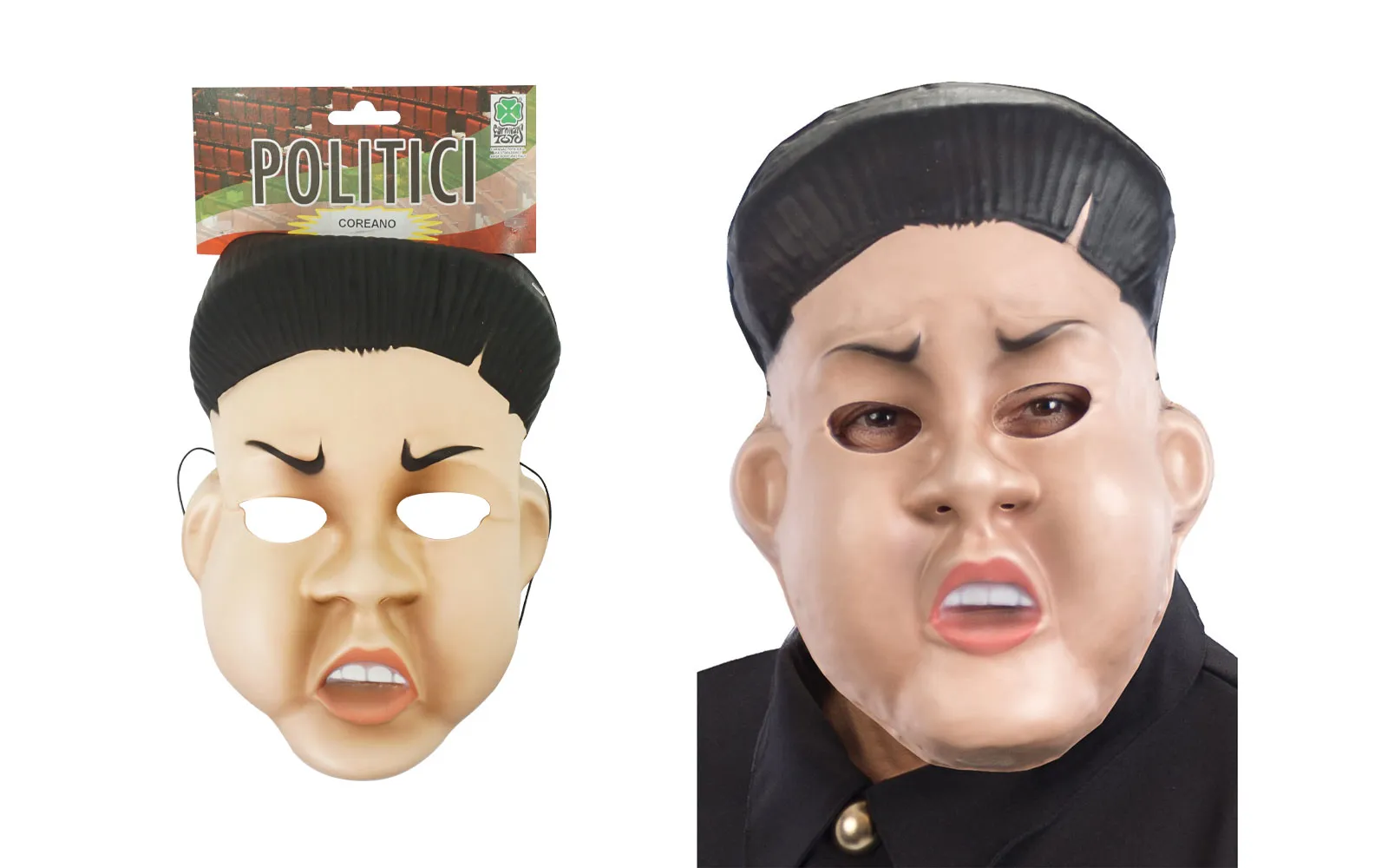 Pustna maska, ki vas spremeni v severnokorejskega politika Kim Jong-una. Pustna maska je narejena iz posebnega EVA materiala, ki je mehak, ekstremno elastičen, z dobro jasnostjo in sijajem z malo ali nič vonja.