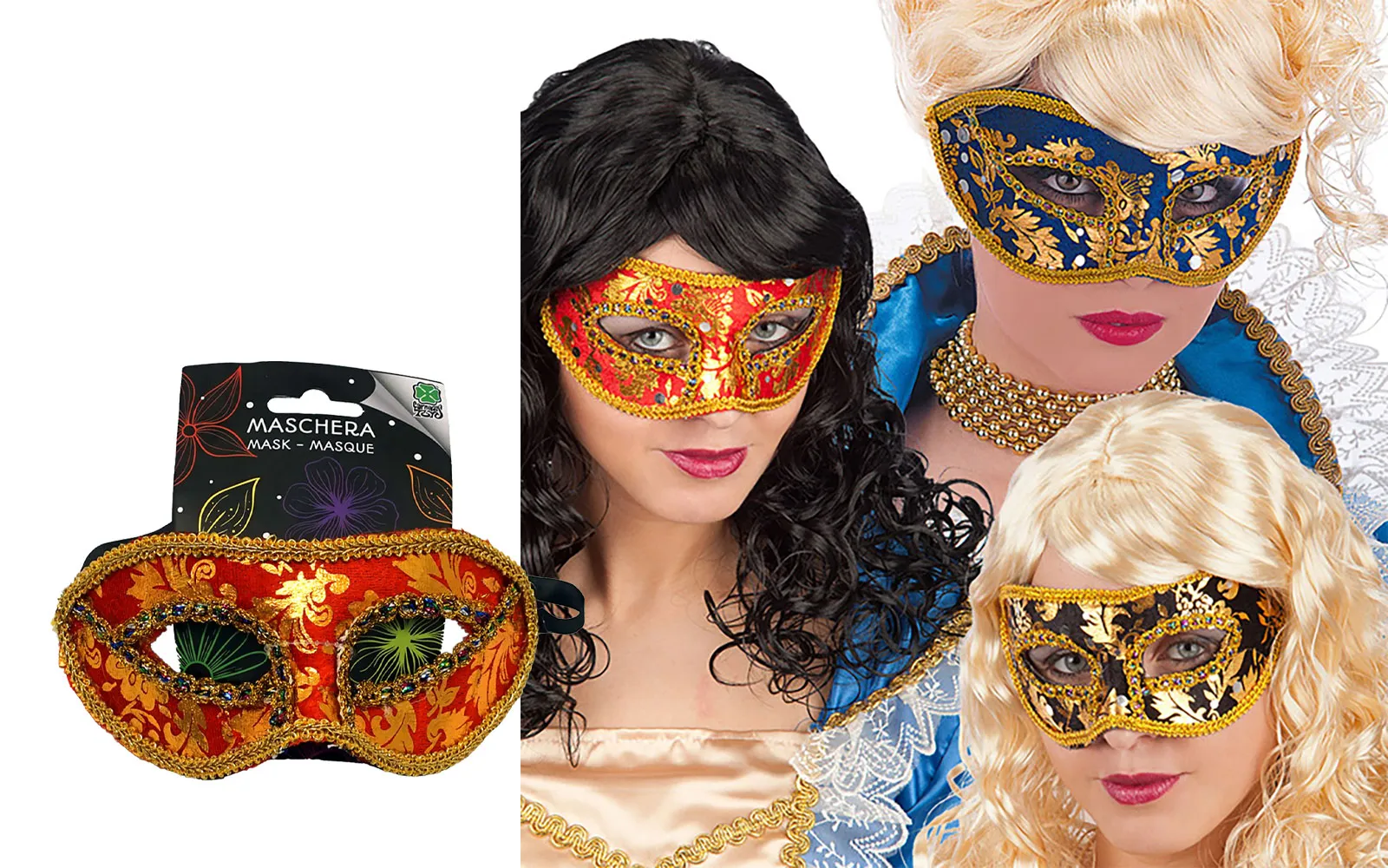 Da boš res neprepoznavna dama, si nadeni še karnevalsk artikel - maska z zlatom treh različnih barv.