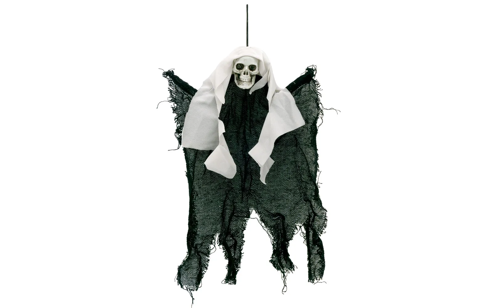 Viseči Halloween okostnjak, primeren za pravo vzdušje za noč čarovnic. Okostnjak ima visečo vrvico za obešanje in je nadvse strašljiv. Vsebuje črno ogrinjalo in lobanjo grozovitega izgleda, kot nalašč za ustrahovanje vaših prijateljev na noč čarovnic.