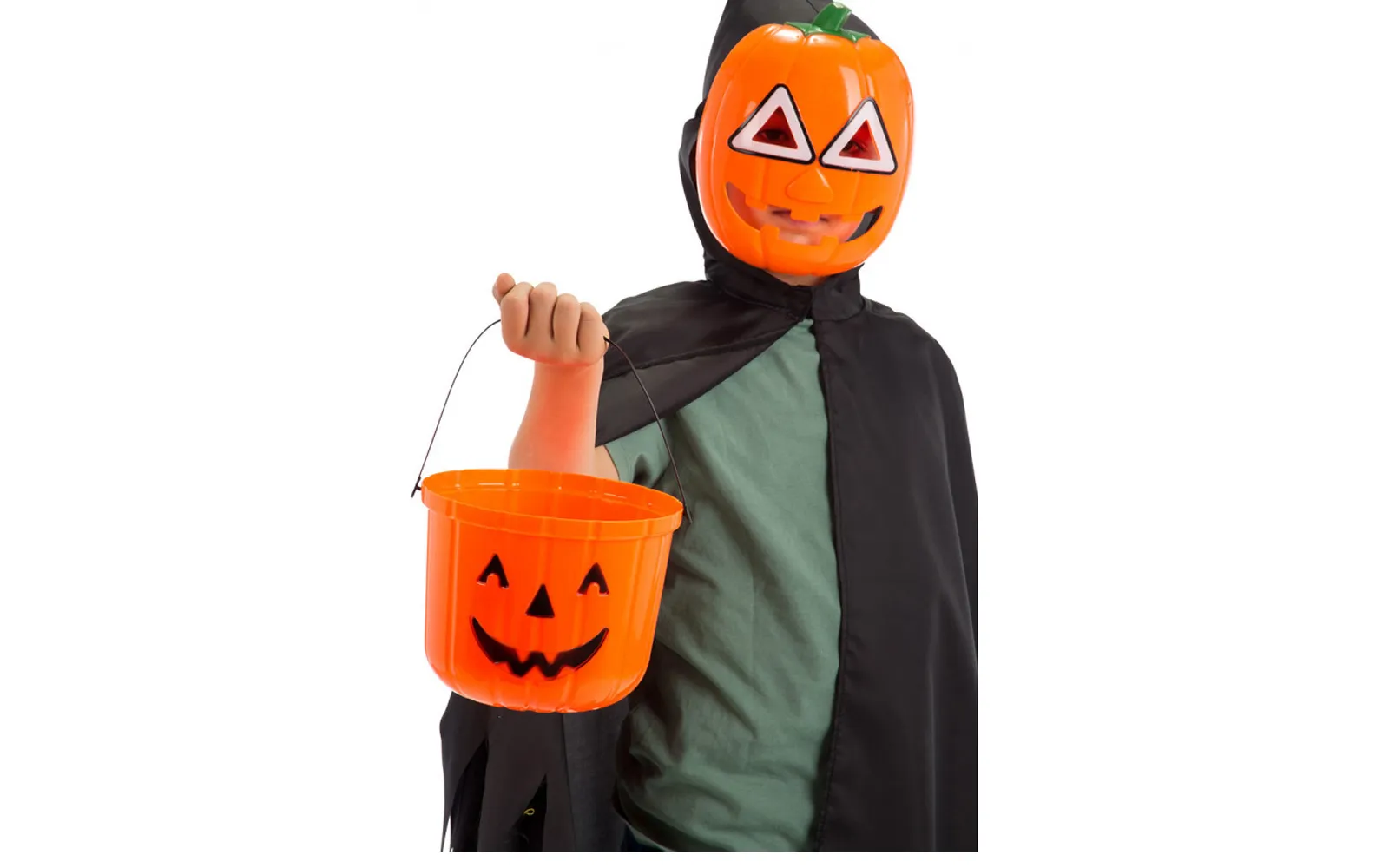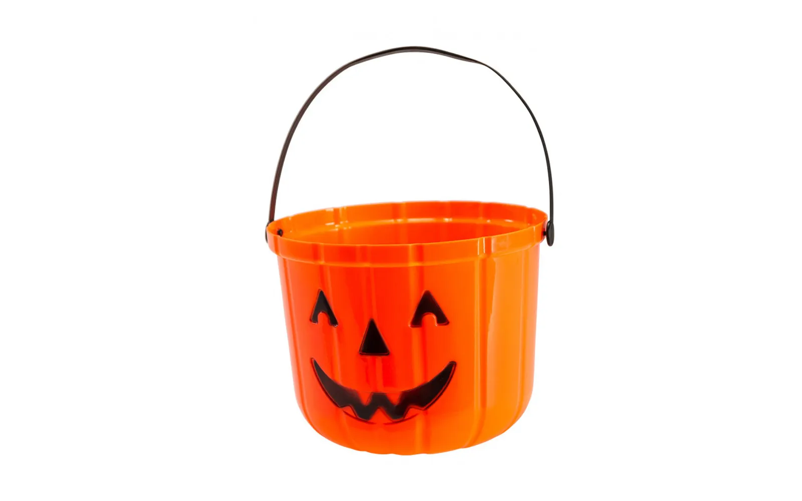Prikupna košarica za popolno noč čarovnic. Košarica je v obliki buče in ima ročaj za nošenje.