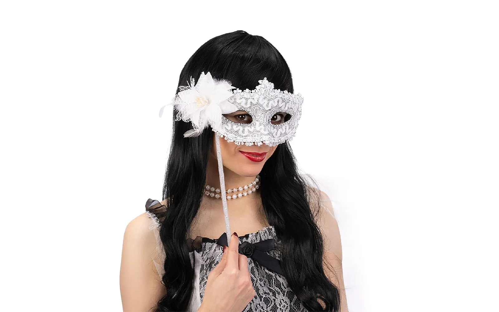 Maska roža s palčko, Carnival Toys. Nadeni si pustno masko in pričaraj pravo pustno vzdušje.Na voljo v beli ali črni barvi.
