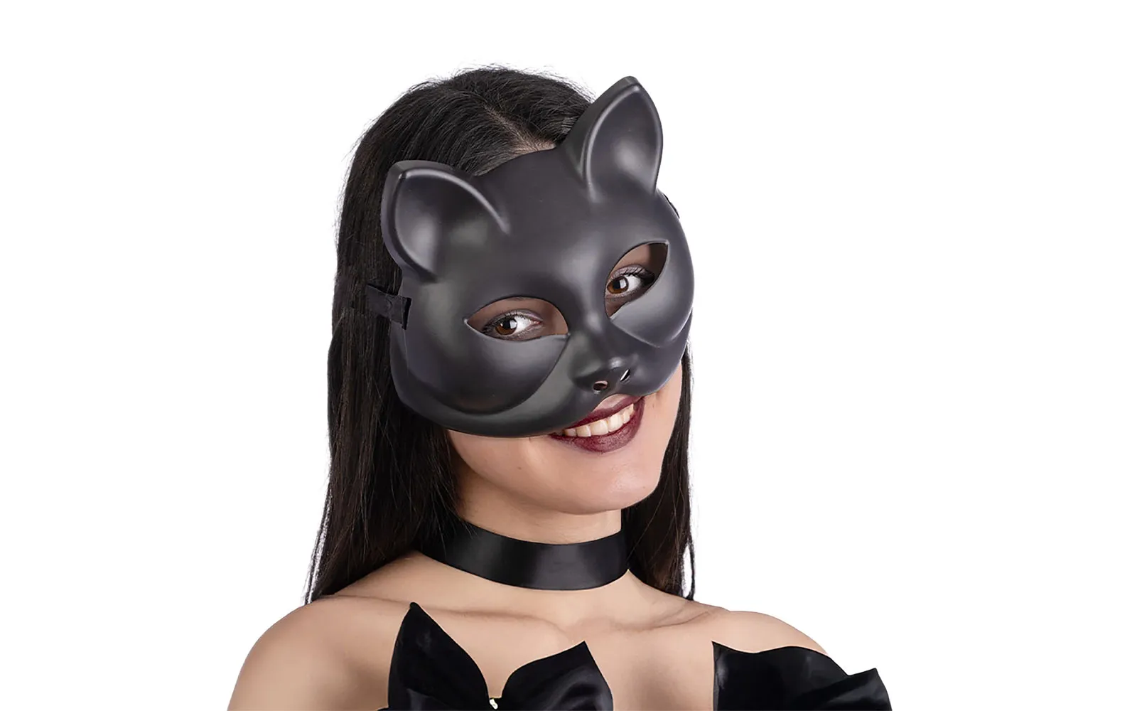 Pustna črna mačja maska, Carnival Toys. Maska prekrije približno polovico obraza, z njo pa si pripravljen na pravo pustno preobrazbo. Izberi še kostum in že se boš spremenil v pravo podobo mačke.