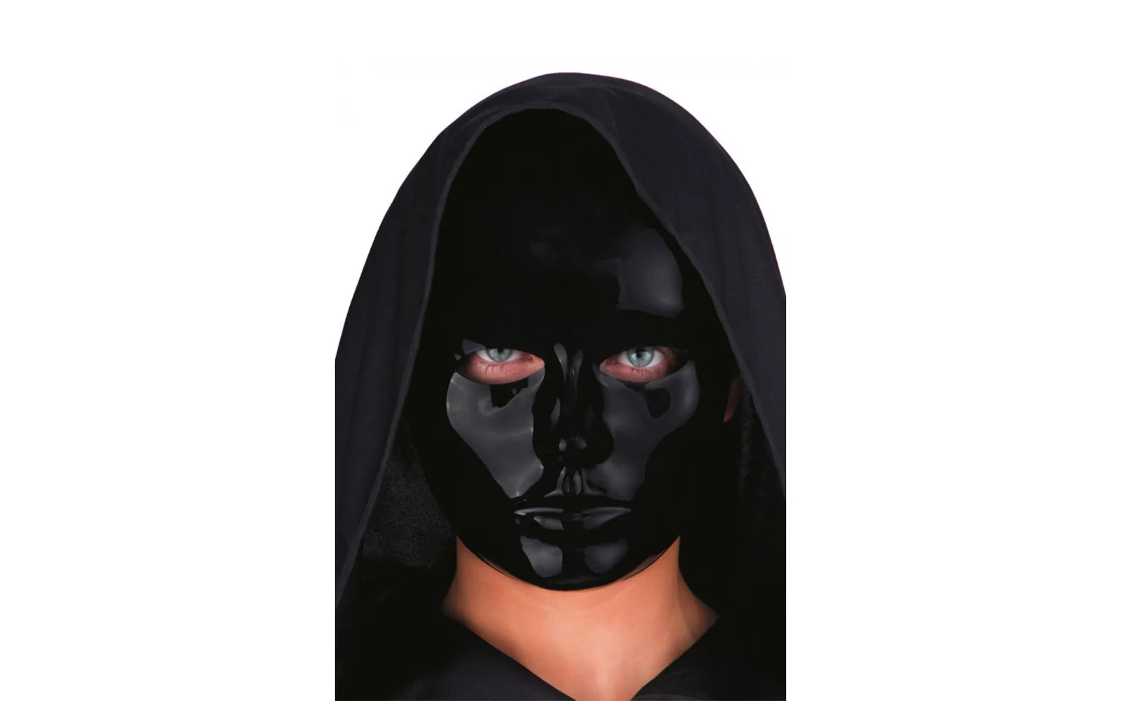 Črna obrazna maska, PVC, Carnival Toys. Maska prekrije celoten obraz. Je iz PVC materiala in je črne barve. Nadeni si pustno masko in pričaraj pravo pustno vzdušje.