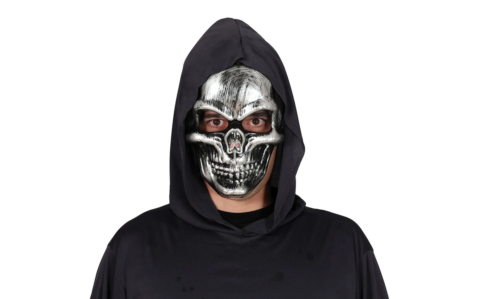 Pustna maska lobanja, PVC. Maska prekrije polovico obraza, je strašljivega izgleda in kot nalašč super pustni dodatek za pustni kostum. Izberi še pustni kostumček in že si prava pustna zvezda!