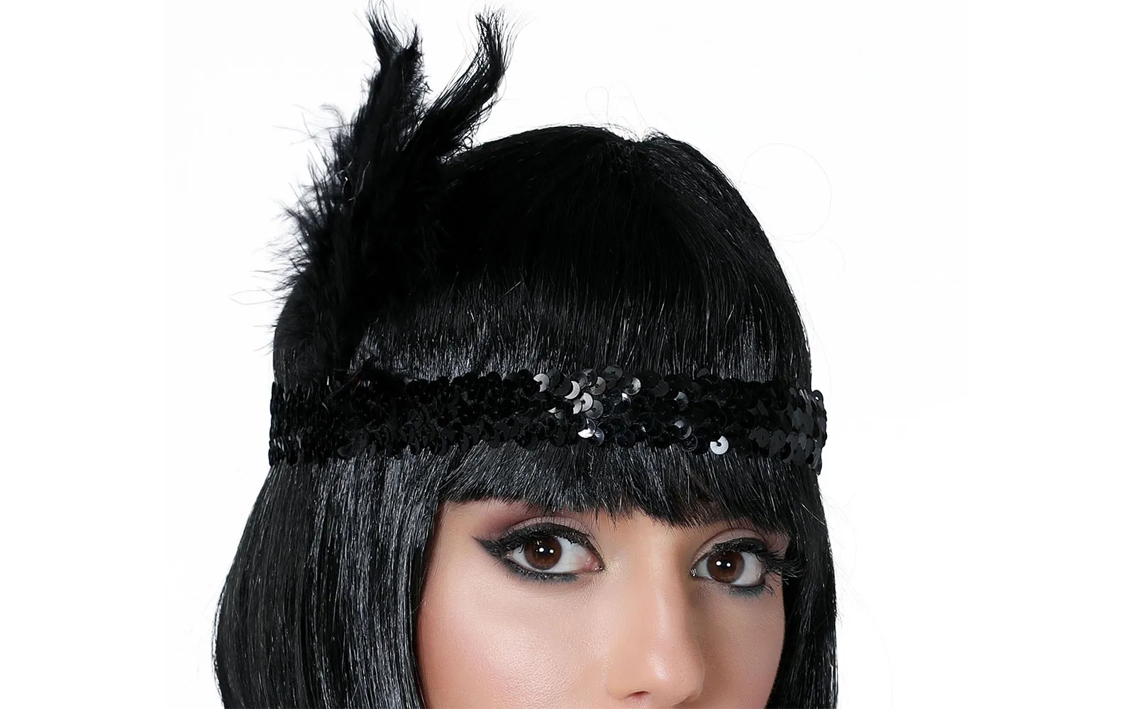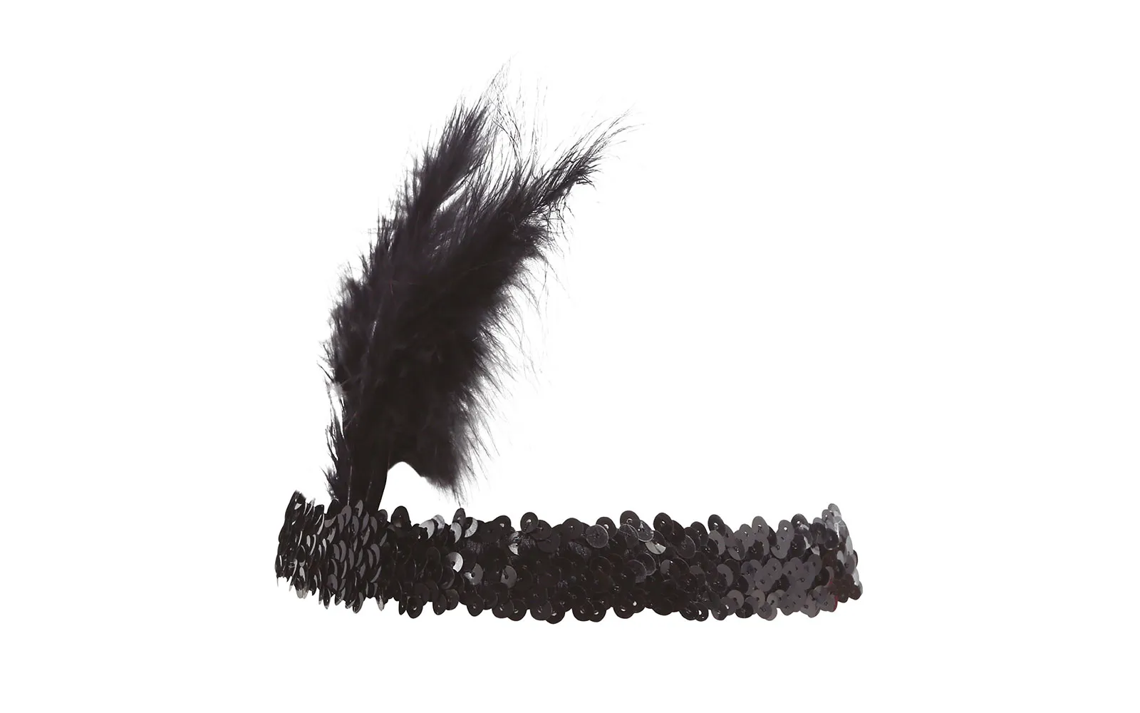 Pustni elegantni trak v stilu Charlestona iz 20. let prejšnjega stoletja, okrašen s peresom in bleščicami. Popoln dodatek za tematske zabave, kostume ali retro modne dogodke. Set vsebuje črn elastičen trak, ki se udobno prilega glavi.