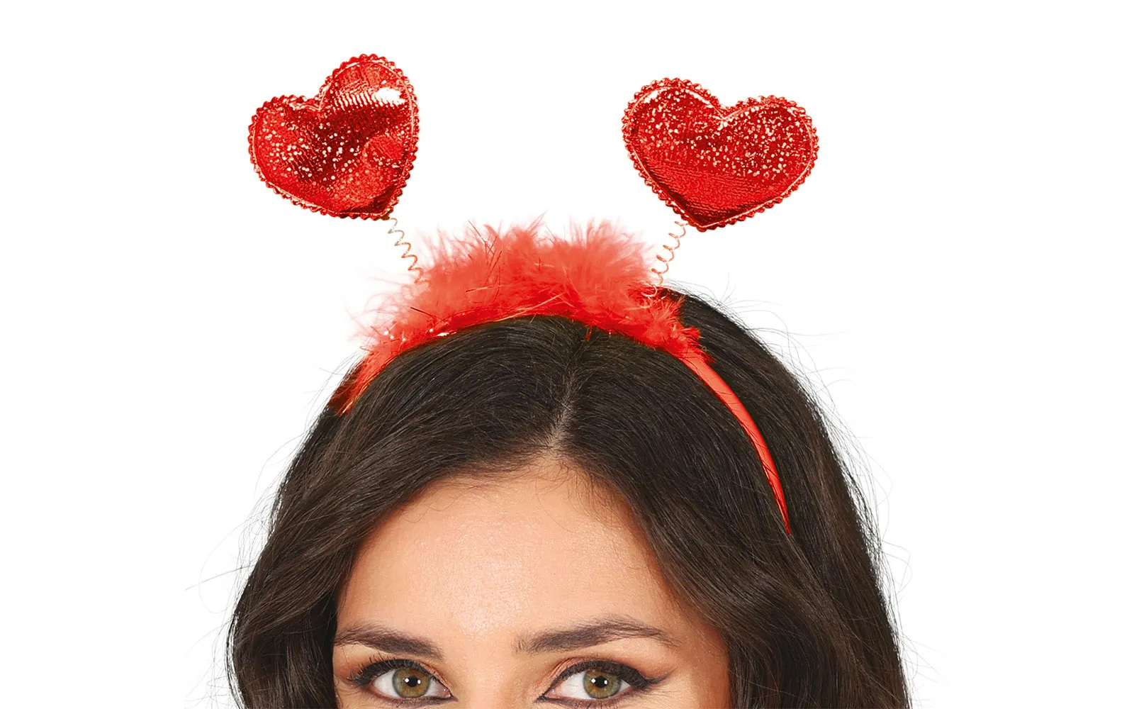 Pustni obroč srce, rdeče barve. Obroč s srčki na vzmeteh. Nadeni si obroček, popestri si svoj pustni kostumček in postani zvezda pustnega karnevala.