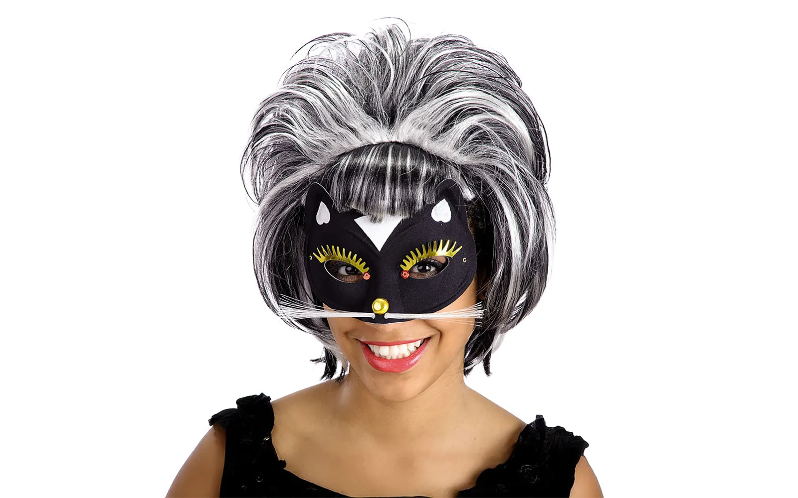 Pustna črna mačja maska, Carnival Toys. Maska prekrije približno polovico obraza, z njo pa si pripravljen na pravo pustno preobrazbo. Izberi še kostum in že se boš spremenil v pravo podobo mačke.