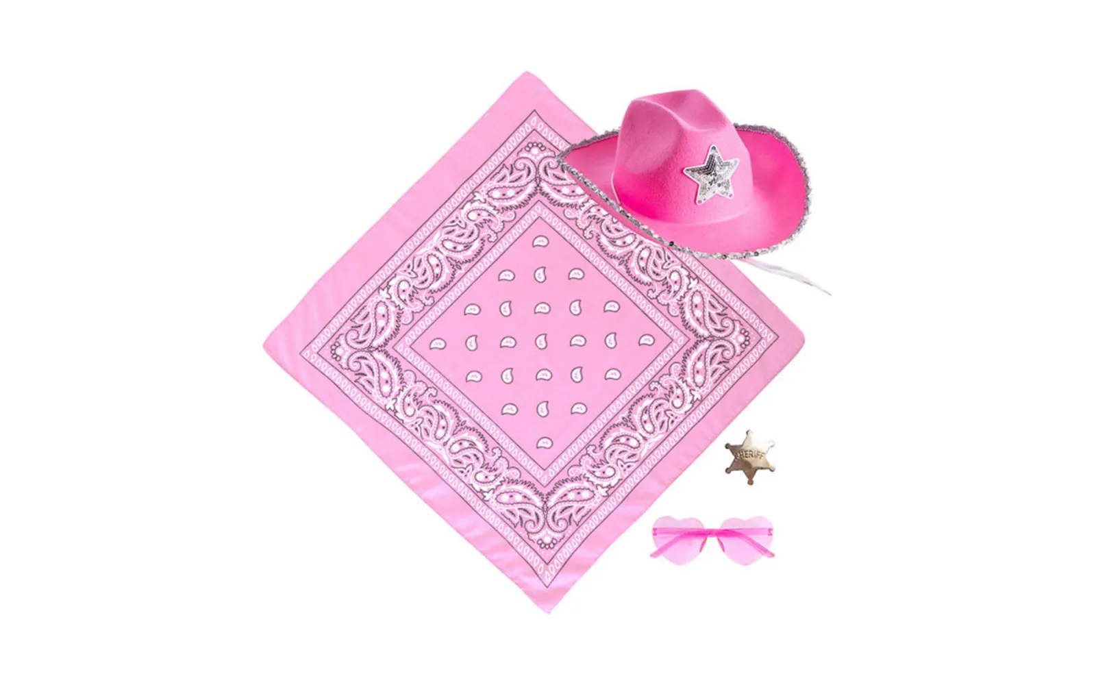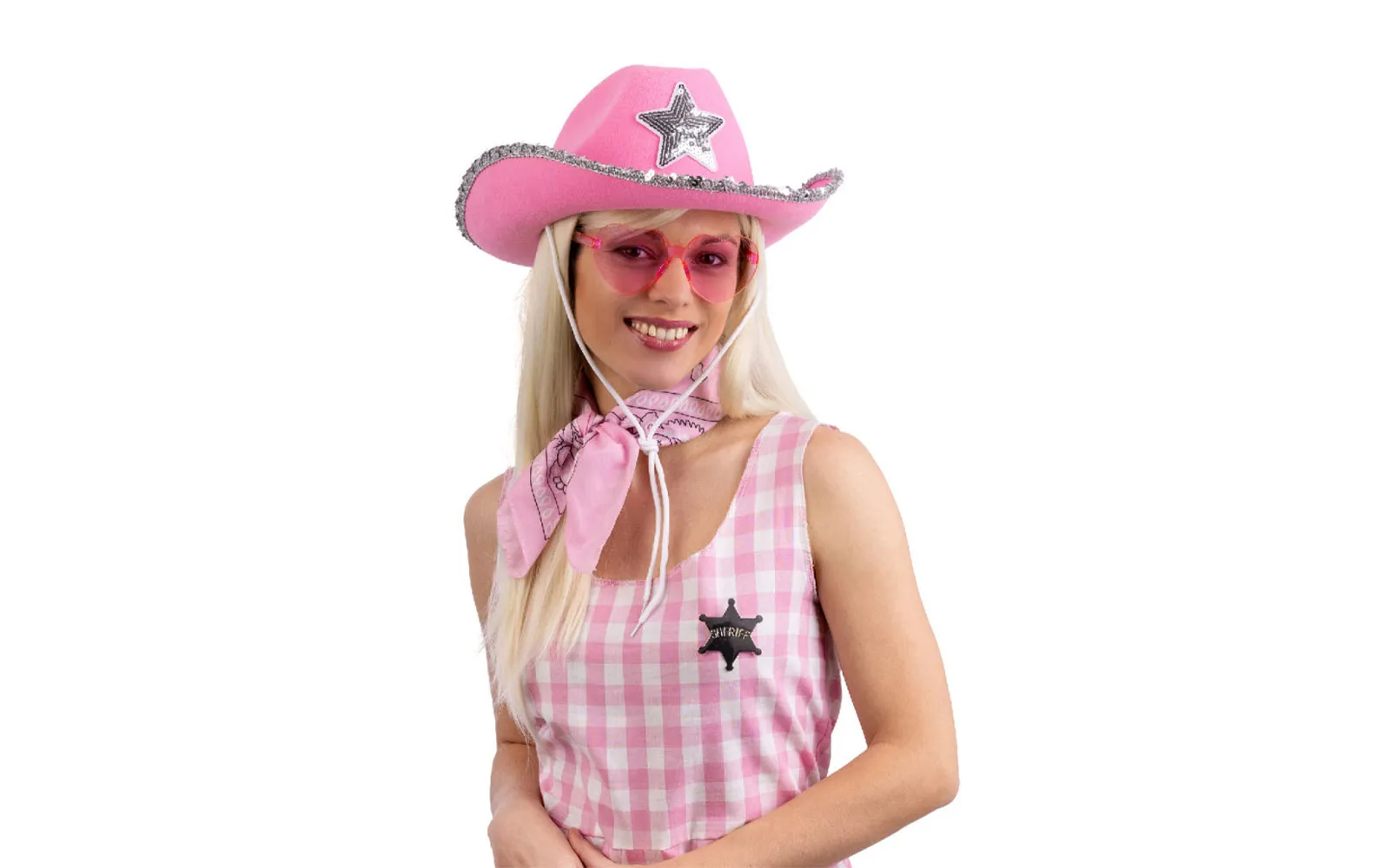 Kavbojski set s klobukom, roza očalci in roza ruto je popoln dodatek za tematske zabave, kostume ali modno preobrazbo z retro pridihom. Udoben za nošenje in preprost za kombiniranje – dodaj svojemu videzu ščepec stila in šarma!