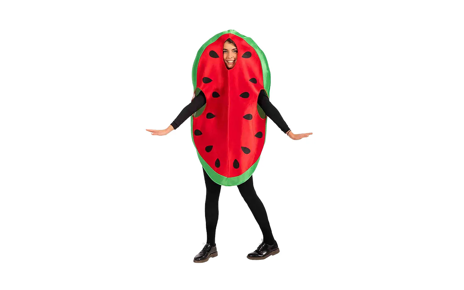 Pripravi se, da boš najbolj sočna zvezda pustne zabave! Pustni kostum za odrasle - lubenica je kot nalašč za vse, ki se radi pošalijo, izstopajo in prinašajo svežino v vsak prostor. Rdeča sredica, črne peške in zeleni rob poskrbijo, da boš videti kot najbolj okusen sadež daleč naokoli. Kostum je udoben, lahek in dovolj širok, da ga lahko oblečeš kar čez svoja oblačila. V setu je vključen kostum lubenice. Spodnja oblačila niso priložena.