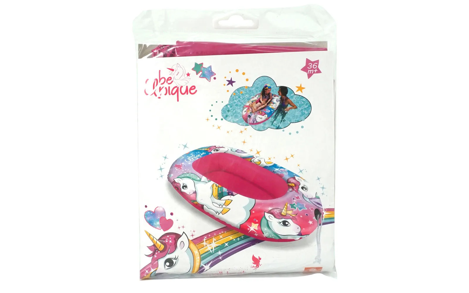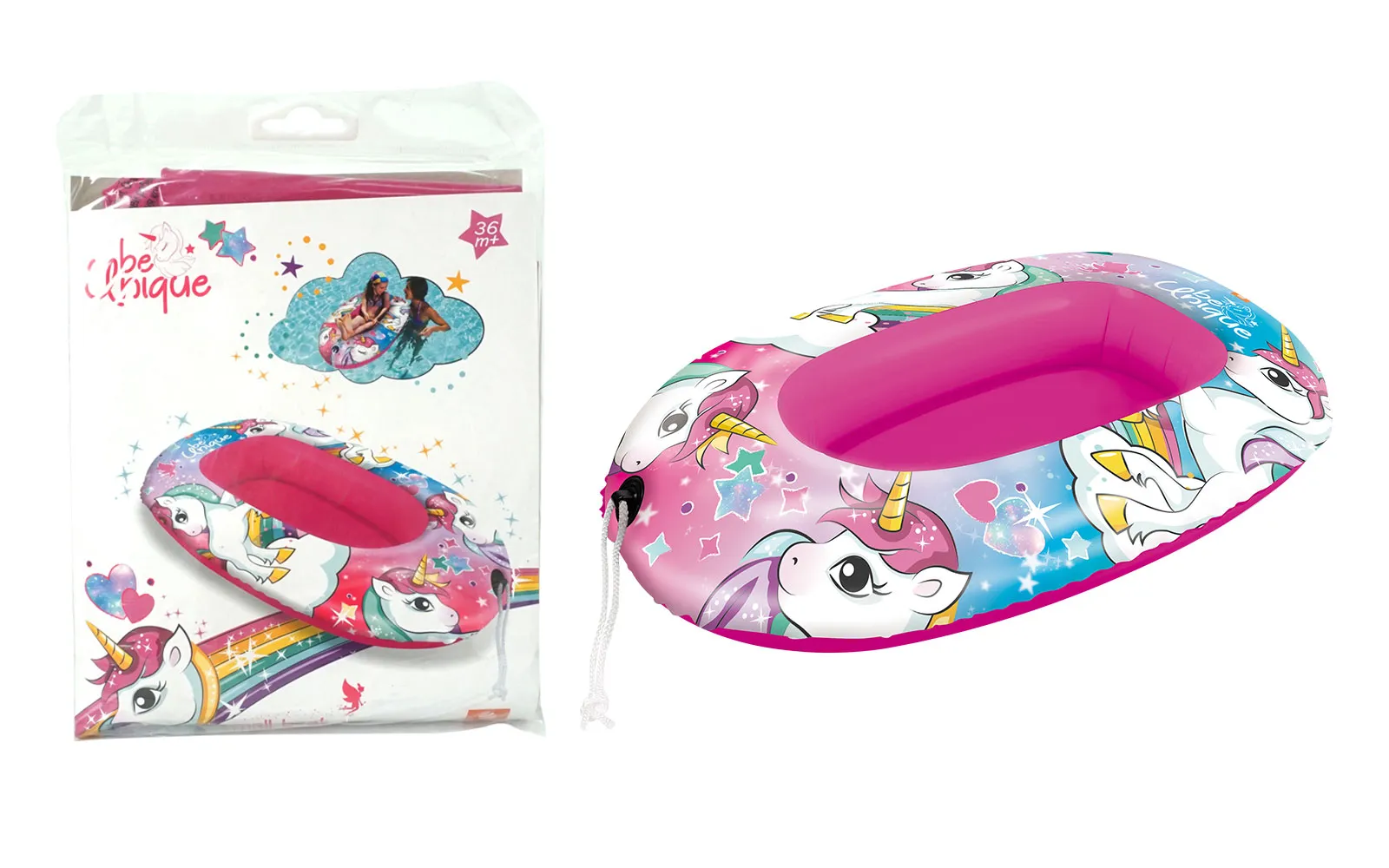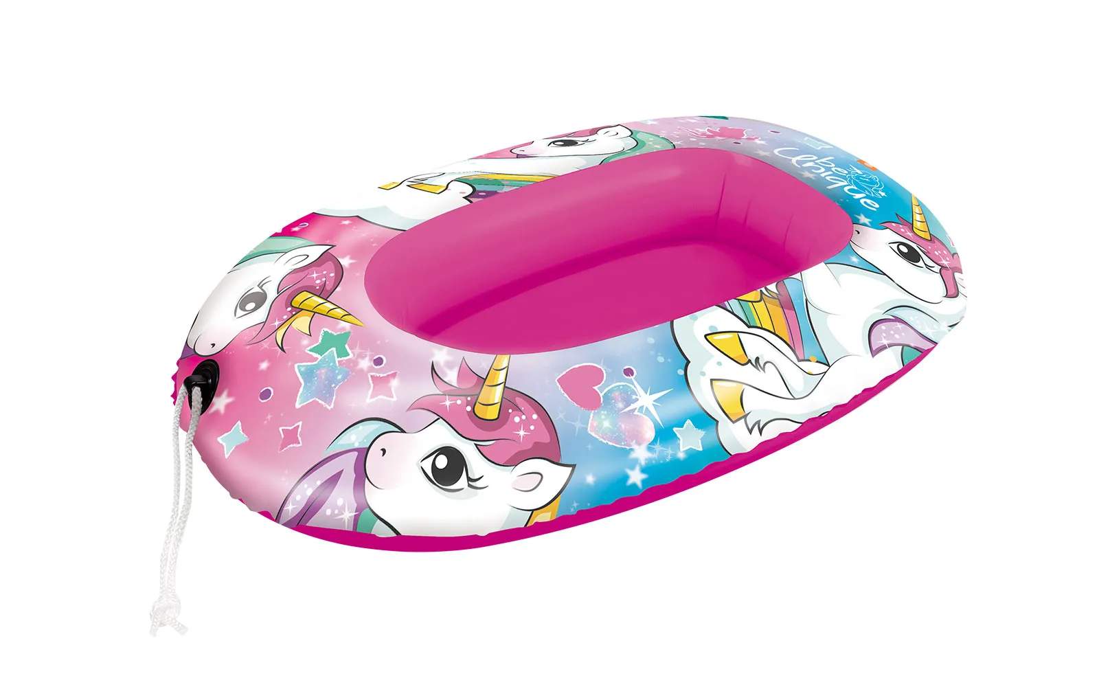 Čoln z motivom samorog velikosti 94 cm s priročno vrvico za vlečenje po vodnih površinah.