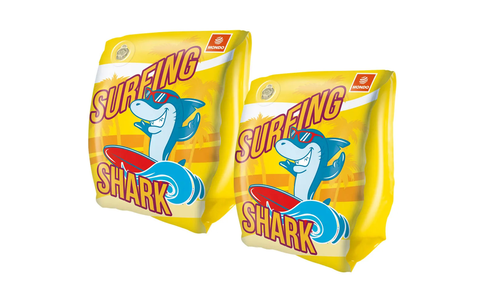 Zaplavajte z rokavčki z motivom Surfing Shark. Naj bo to morje, reka ali bazen z rokavčki bo plavanje vedno lažje in zabavnejše. Velikost 23x15 cm.