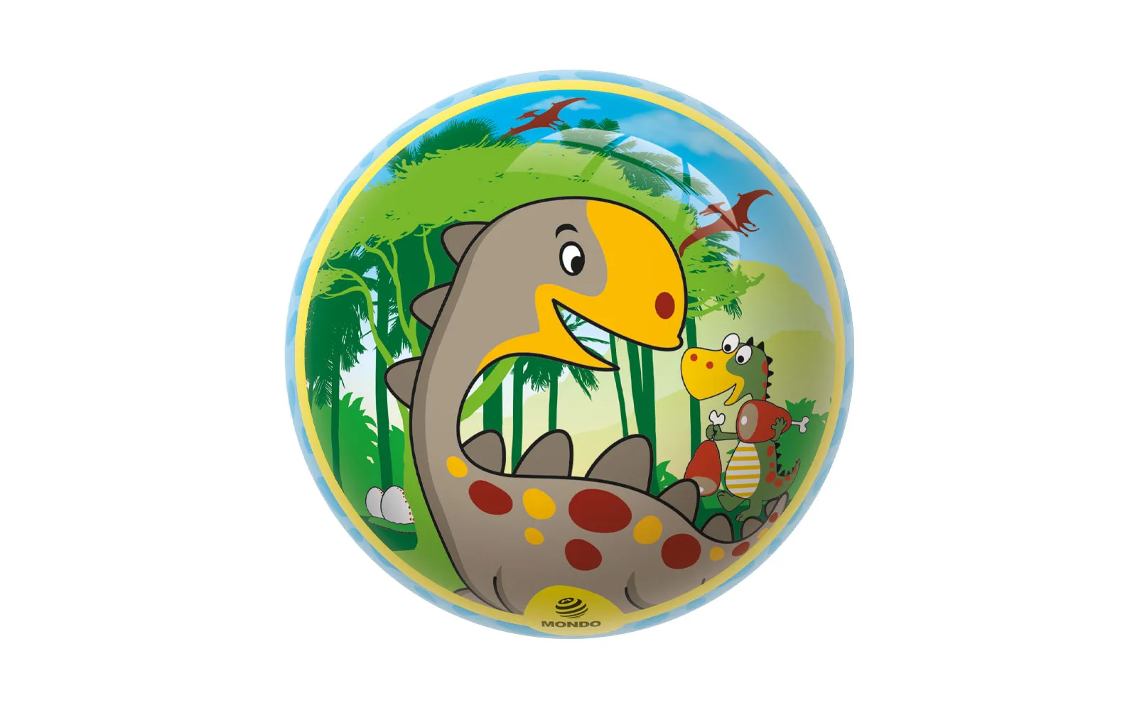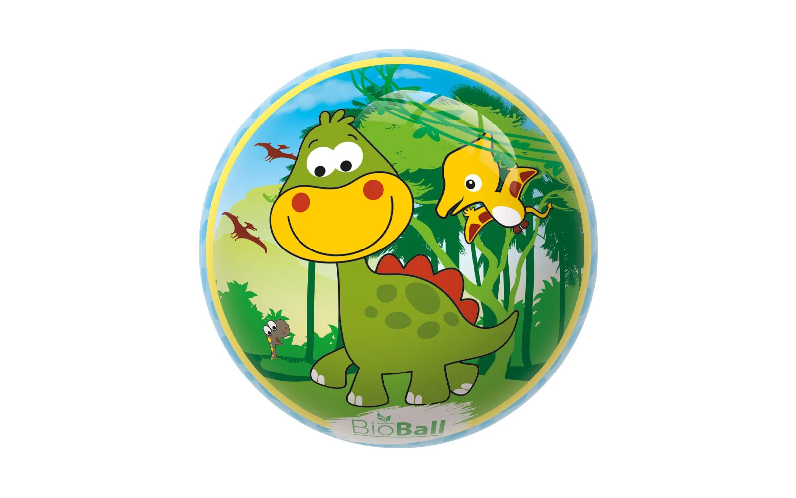 Otroška bio žoga FI 230mm z motivom Dinozaver. Žoga je izdelana po okolju prijazni formuli, ki nadomešča 50% fosilnih derivatov z obnovljivimi rastlinskimi derivati. Novi material je neprimerno prijaznejši za okolje in omogoča boljše recikliranje in ponovno proizvajanje igrač.