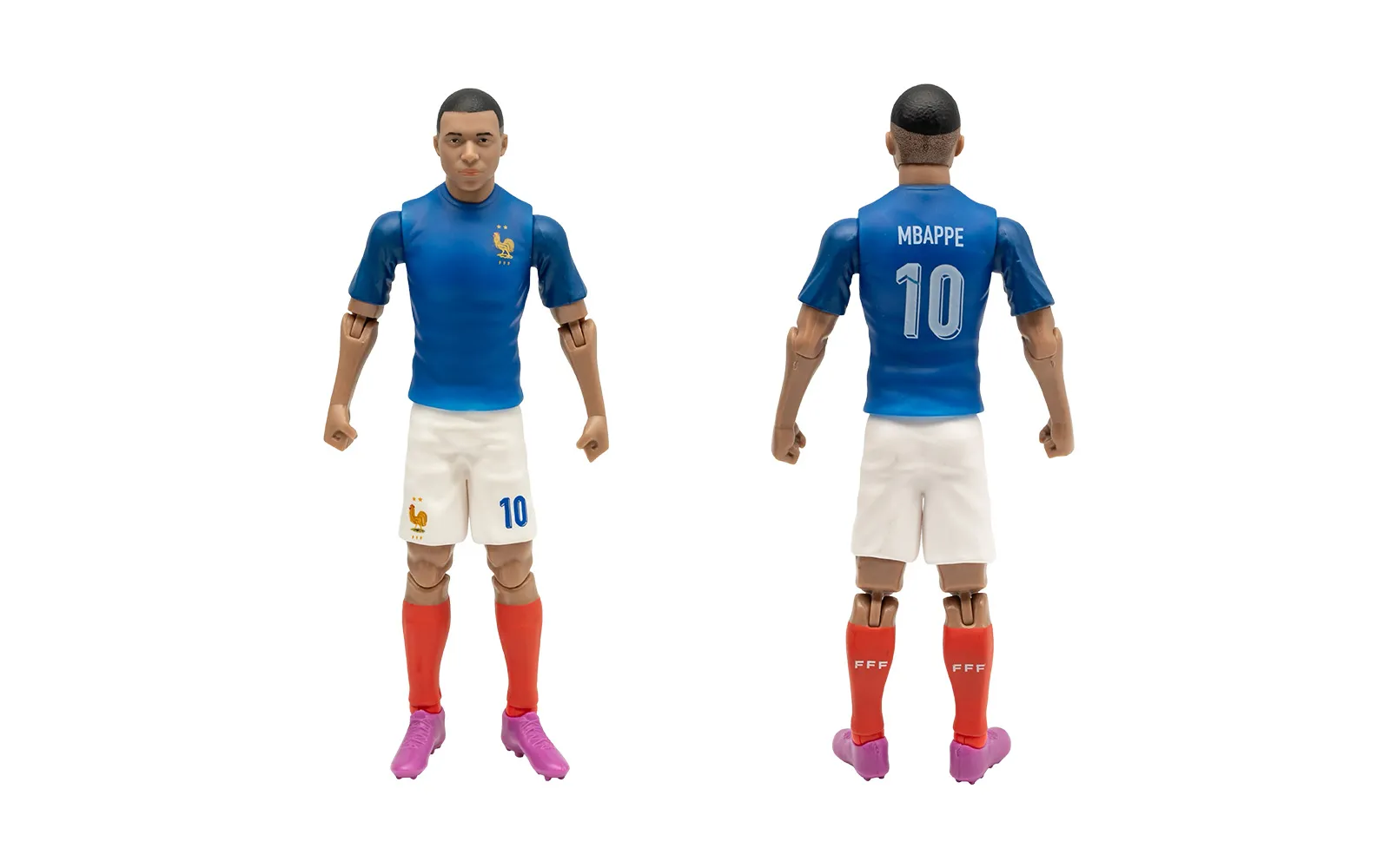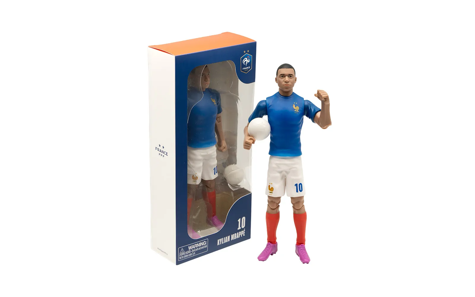 Nogometna figura, MBappe, 20 cm. Odkrijte avtentično figuro priljubljenega igralca nogometa MBappe. Figura je visoko kakovostne izdelave, ima gibljive okončine, nosi številko kluba ter ima priloženo nogometno žogo.