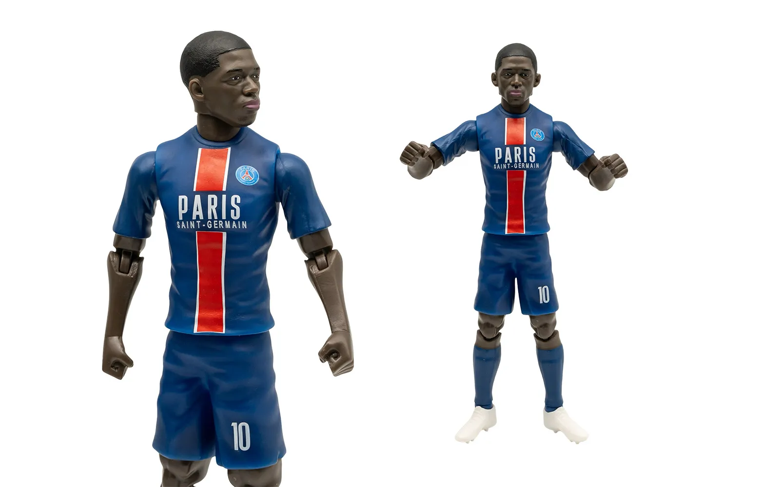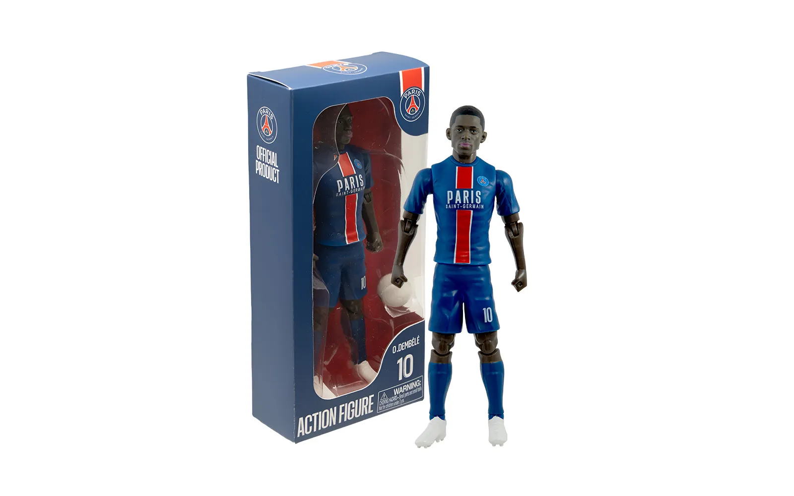 Nogometna figura, Dembele, 20 cm. Odkrijte avtentično figuro priljubljenega igralca nogometa Dembele-a. Figura je visoko kakovostne izdelave, ima gibljive okončine, nosi številko kluba ter ima priloženo nogometno žogo.