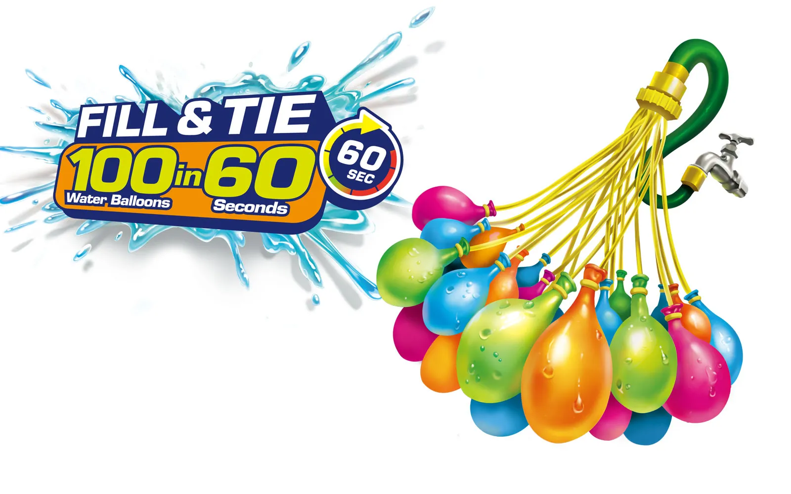 Napolni in zaveži 100 vodnih balonov v manj kot 60 sekundah s temi senzacionalnimi vodnimi baloni, ki se zavežejo sami! Set Bunch O Balloons Tropical vsebuje tri šope vodnih balonov različnih barv, ki se, ko se jih napolni z vodo, sami zavežejo. V posameznem šopu je okrog 35 vodnih balonov.