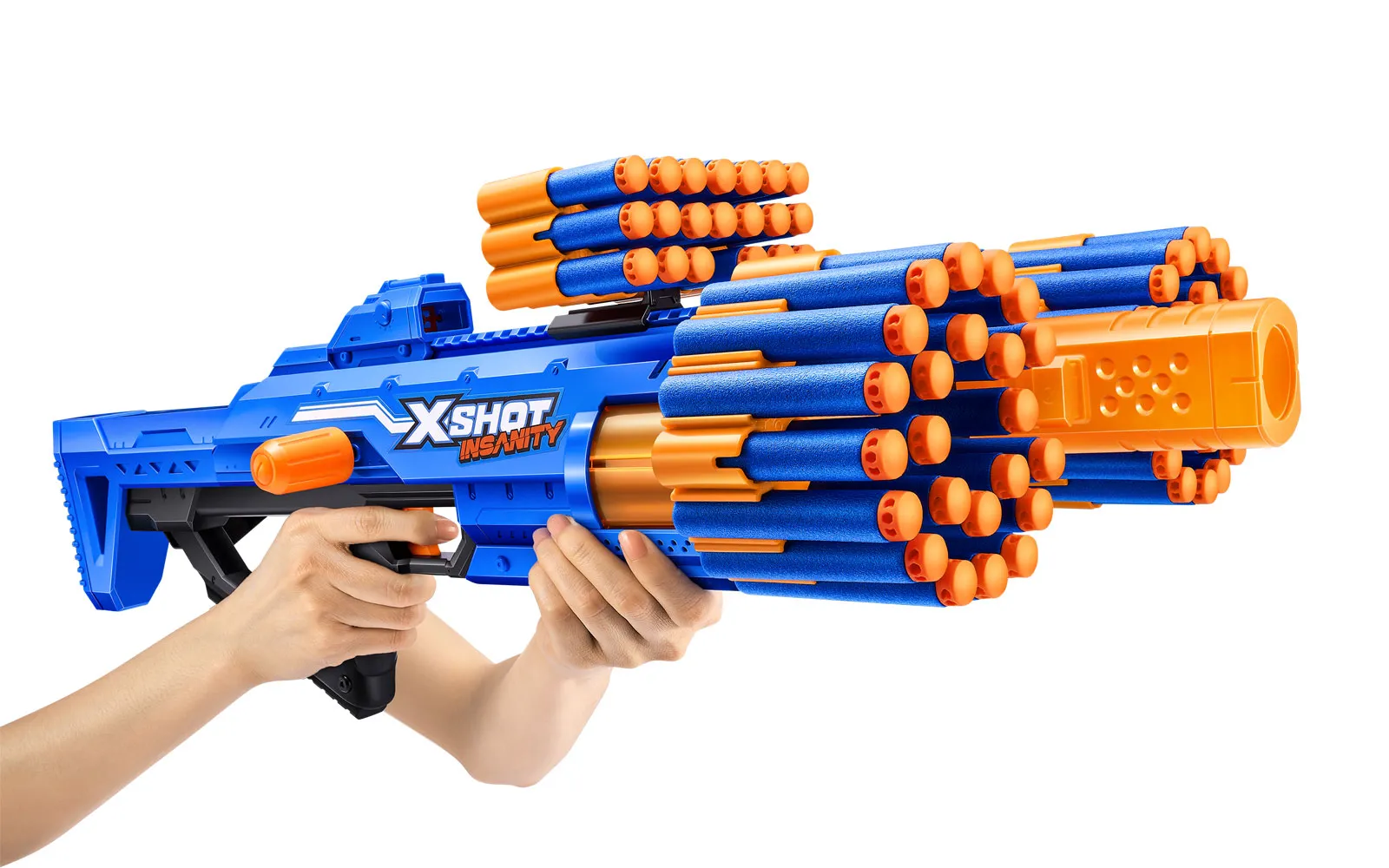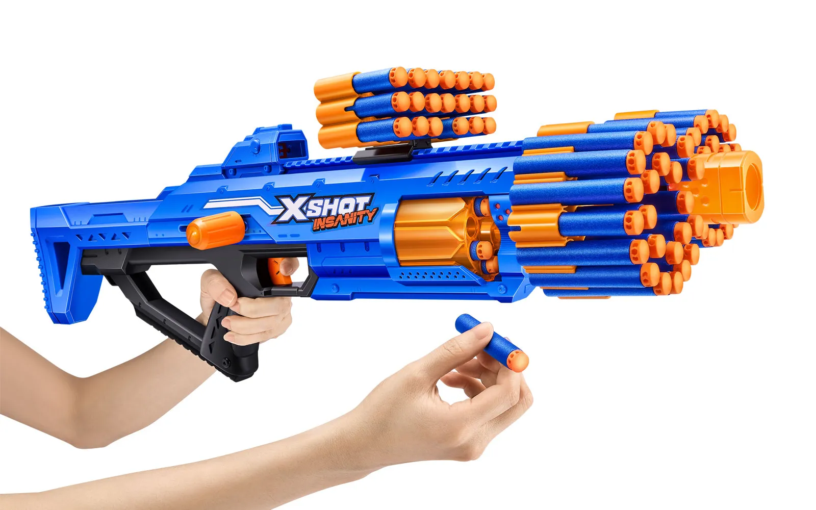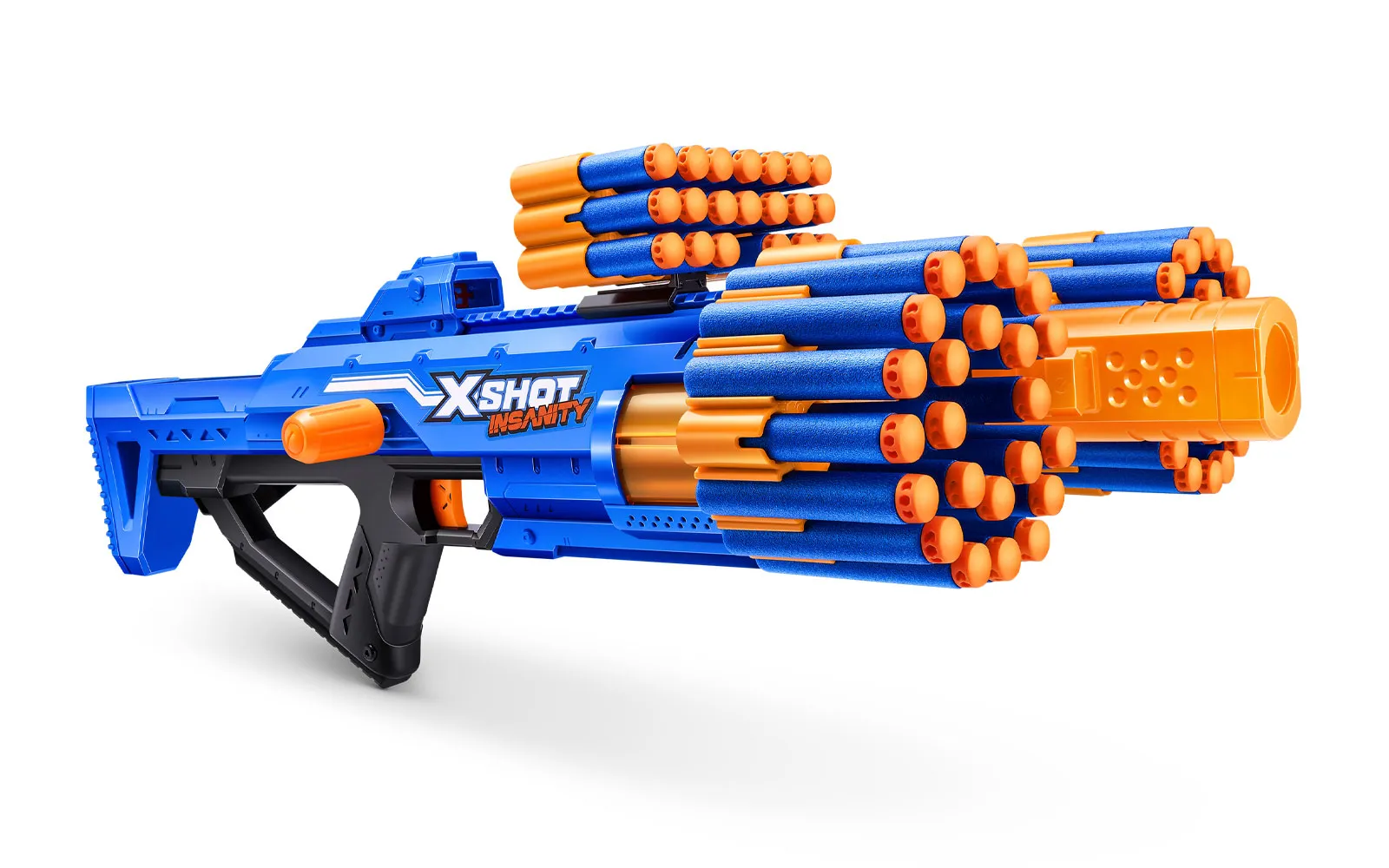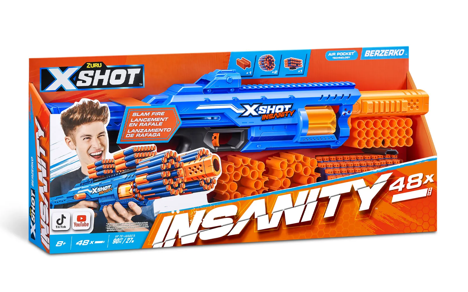 Tu je nova inovativna linija X-Shot Insanity. Odkrijte puško X-Shot Insanity Berzerko in se podajte v noro akcijo! Puška omogoča izstrel 8 metkov v nekaj sekundah, hkrati pa metki letijo do 27 metrov. Set vsebuje 48 penastih metkov.
