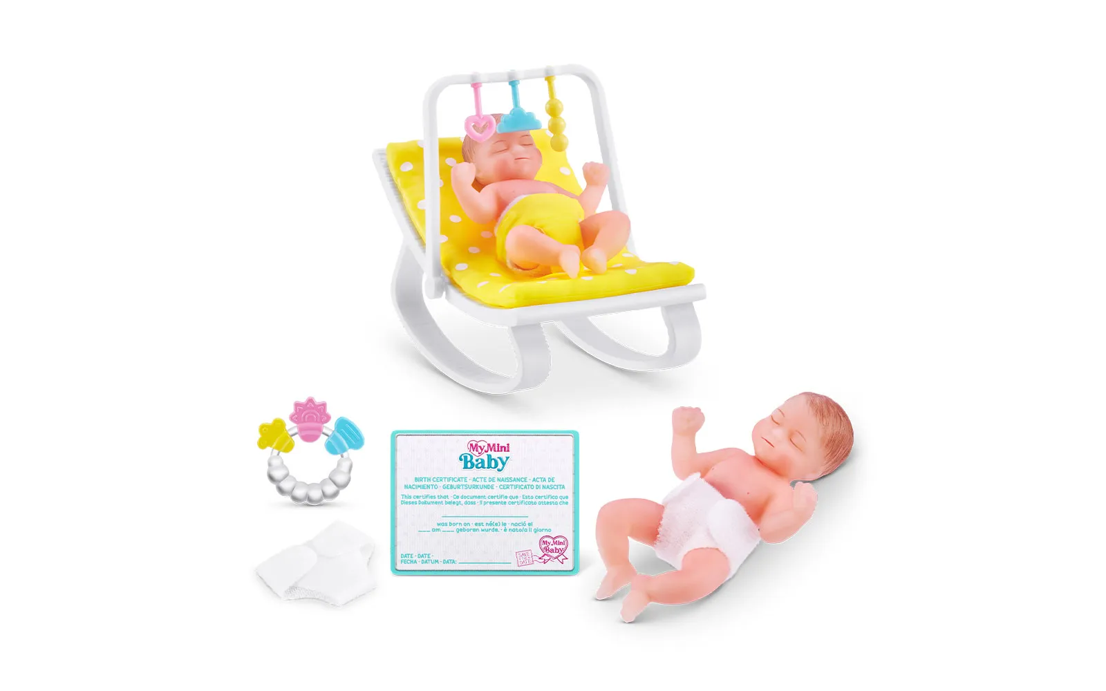 Set 5 surprise My mini baby vsebuje dojenčka, 1x igralni set, 1x pripomoček za dojenčka, 1x rojstni list in navodila. Zberete lahko kar 12 različnih.