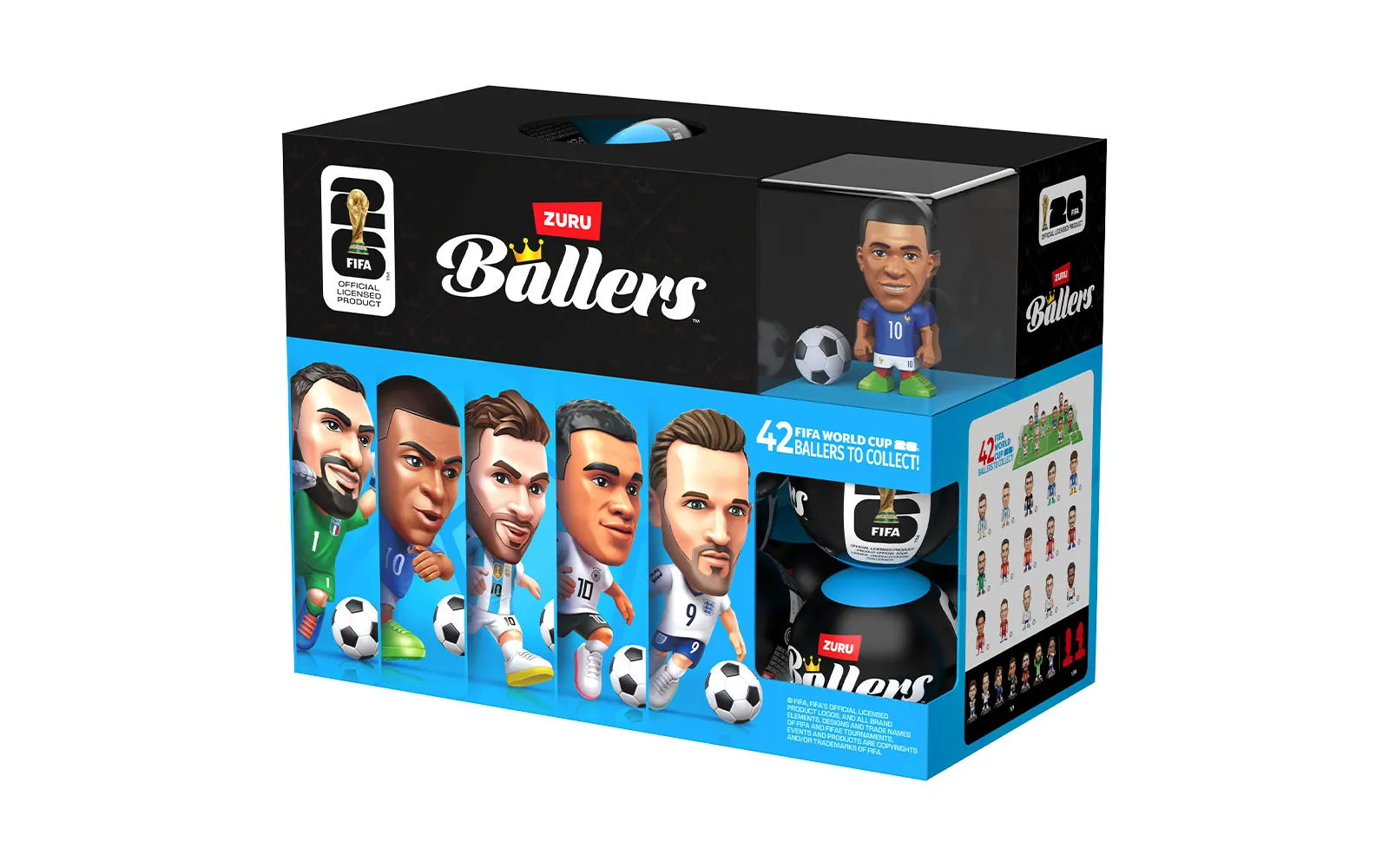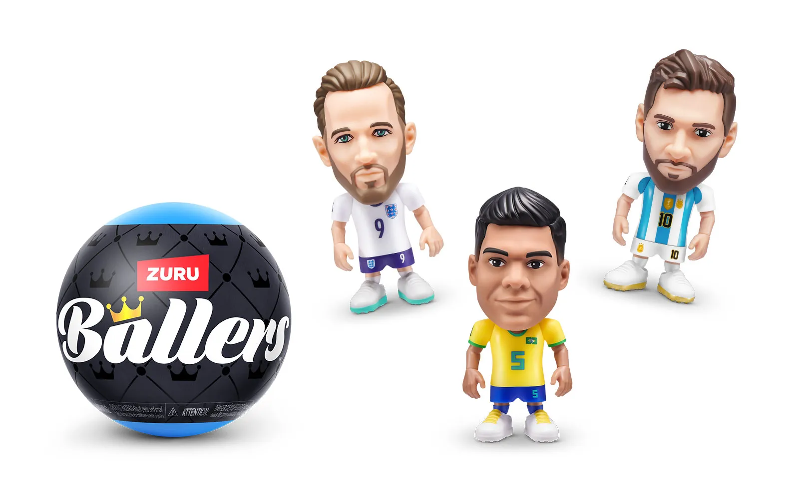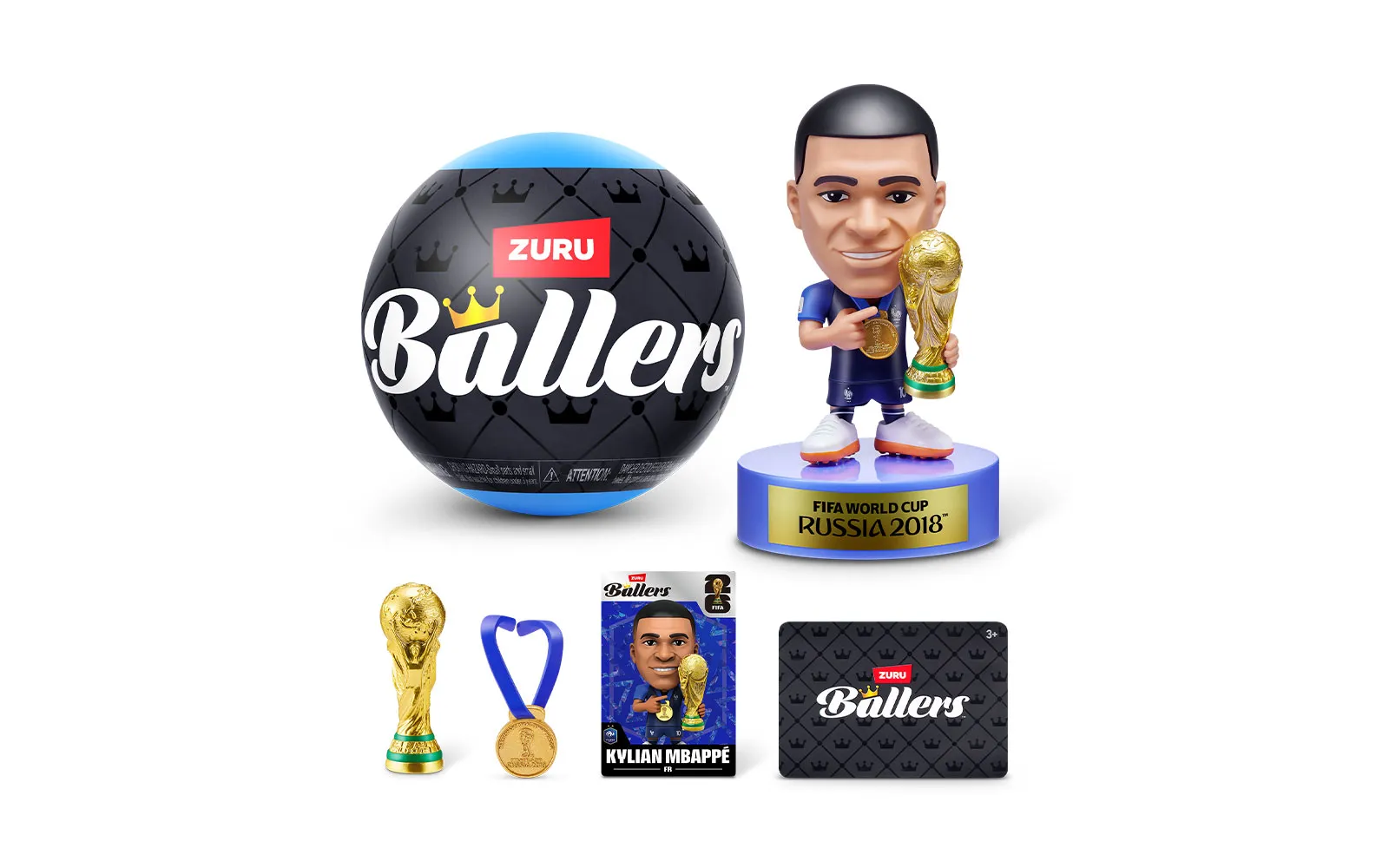 5 Surprise Fifa ballers - čas je za posebno doživetje! V kapsuli se skriva 5 presenečenj z realističnimi podrobnostmi. Med presenečenji je tudi delček igrišča, ki ga nato lahko sestavite v pravo mini nogometno igrišče. Zberete lahko do 42 različnih figur. Vsaka kapsula vsebuje 1 figuro, ki je presenečenje. Figura je lahko iz moštva Argentine, Francije, Španije, Nemčije, Brazilije, Italije, Urugvaja, Združenih držav Amerike, Kanade, Anglije ali Meksika.
