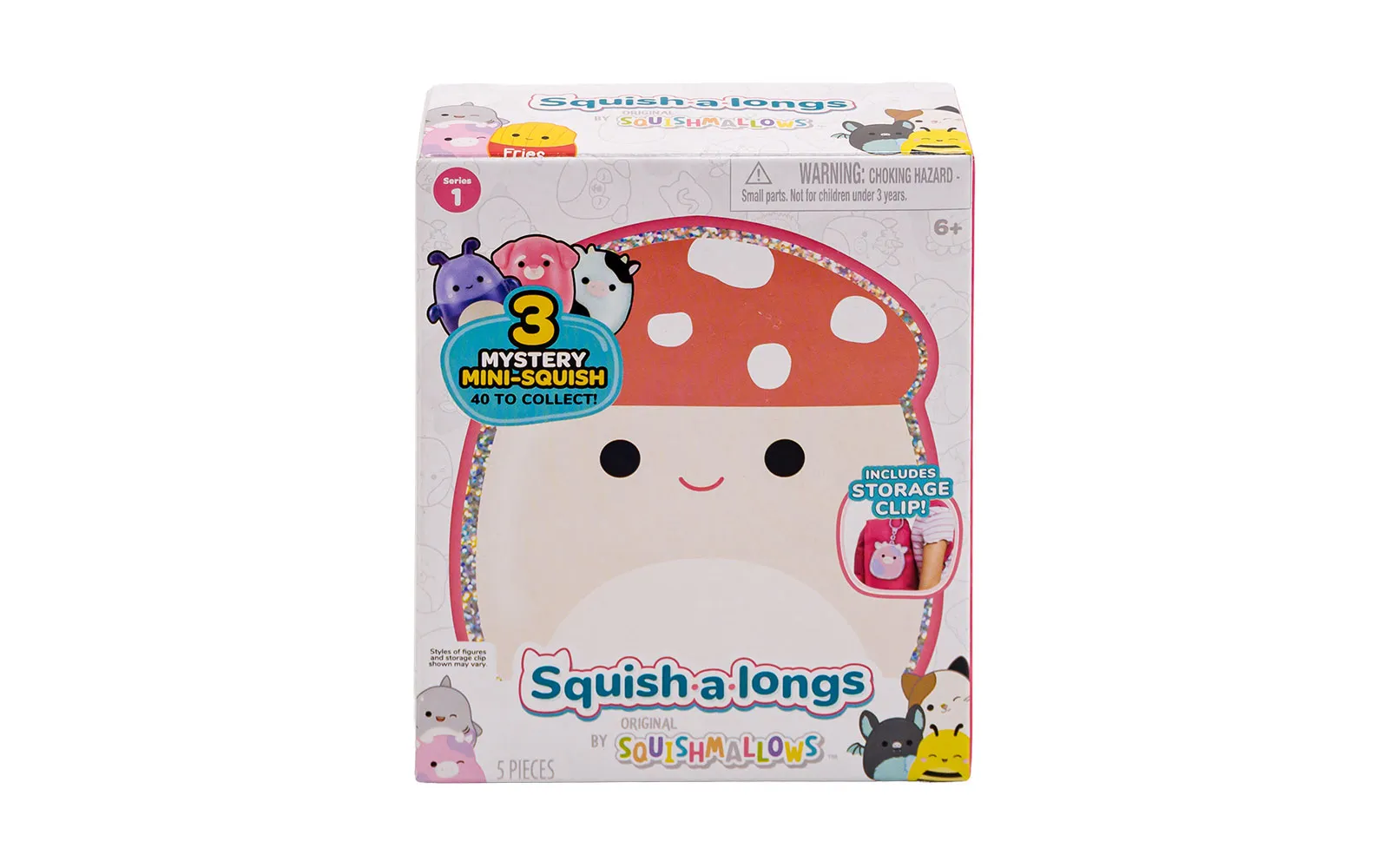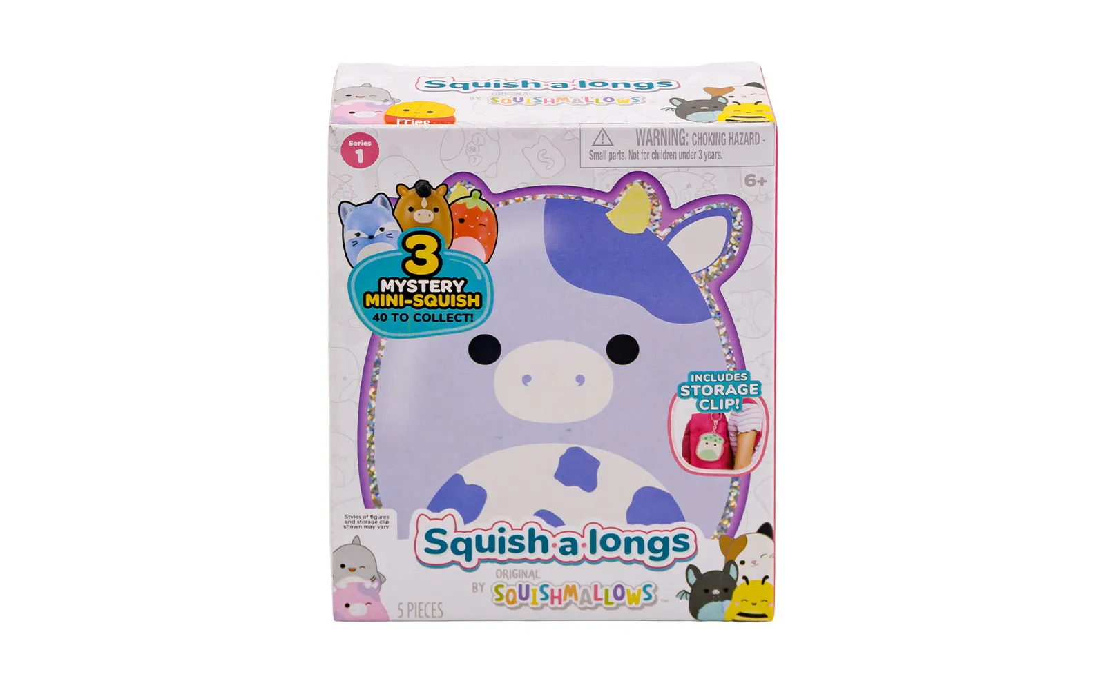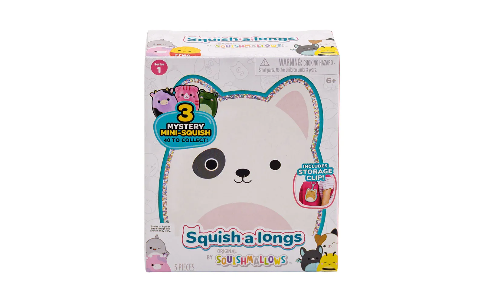 Squish-a-longs obesek prinaša novo raven zabave v 2,5 cm velikosti! V prenosni škatlici lahko shraniš do 8 Mini-Squish figuric. S Clip & Go priponko pa lahko svojo zbirko vzameš kamorkoli!
