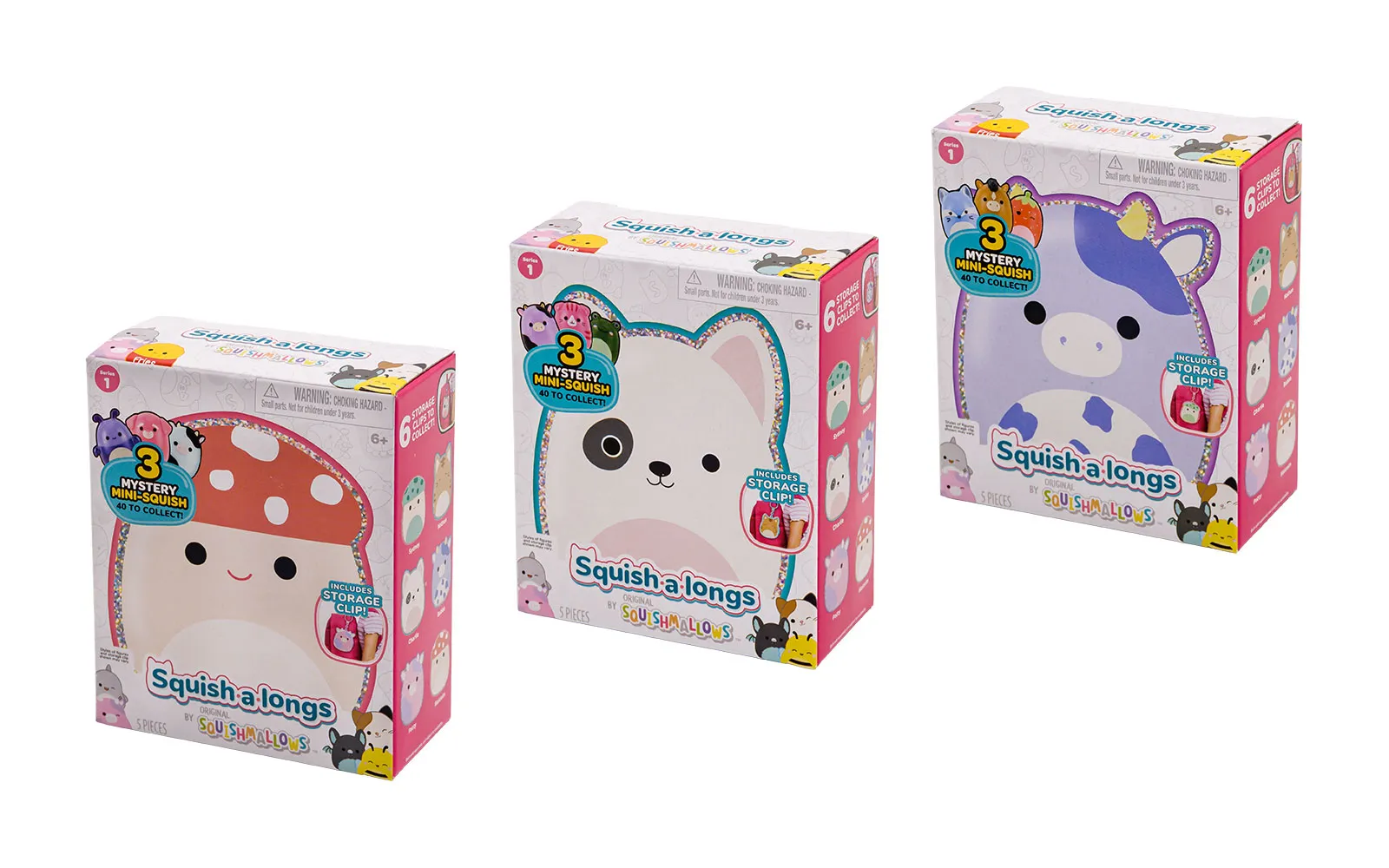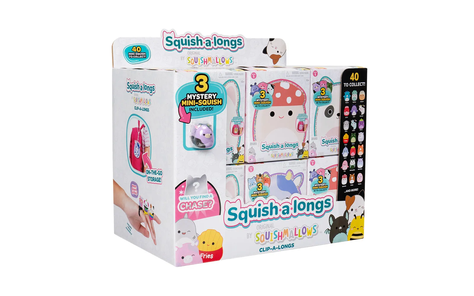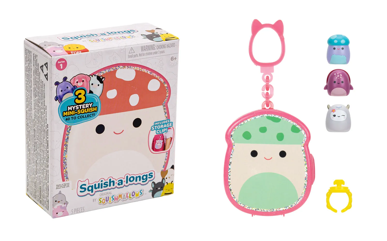 Squish-a-longs obesek prinaša novo raven zabave v 2,5 cm velikosti! V prenosni škatlici lahko shraniš do 8 Mini-Squish figuric. S Clip & Go priponko pa lahko svojo zbirko vzameš kamorkoli!