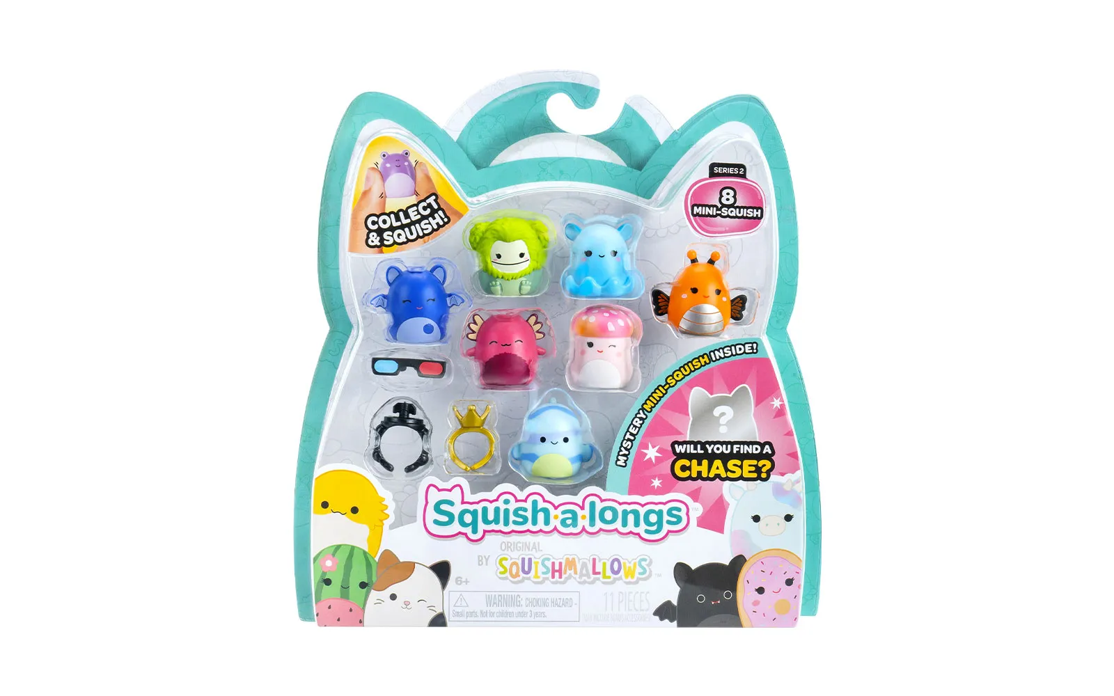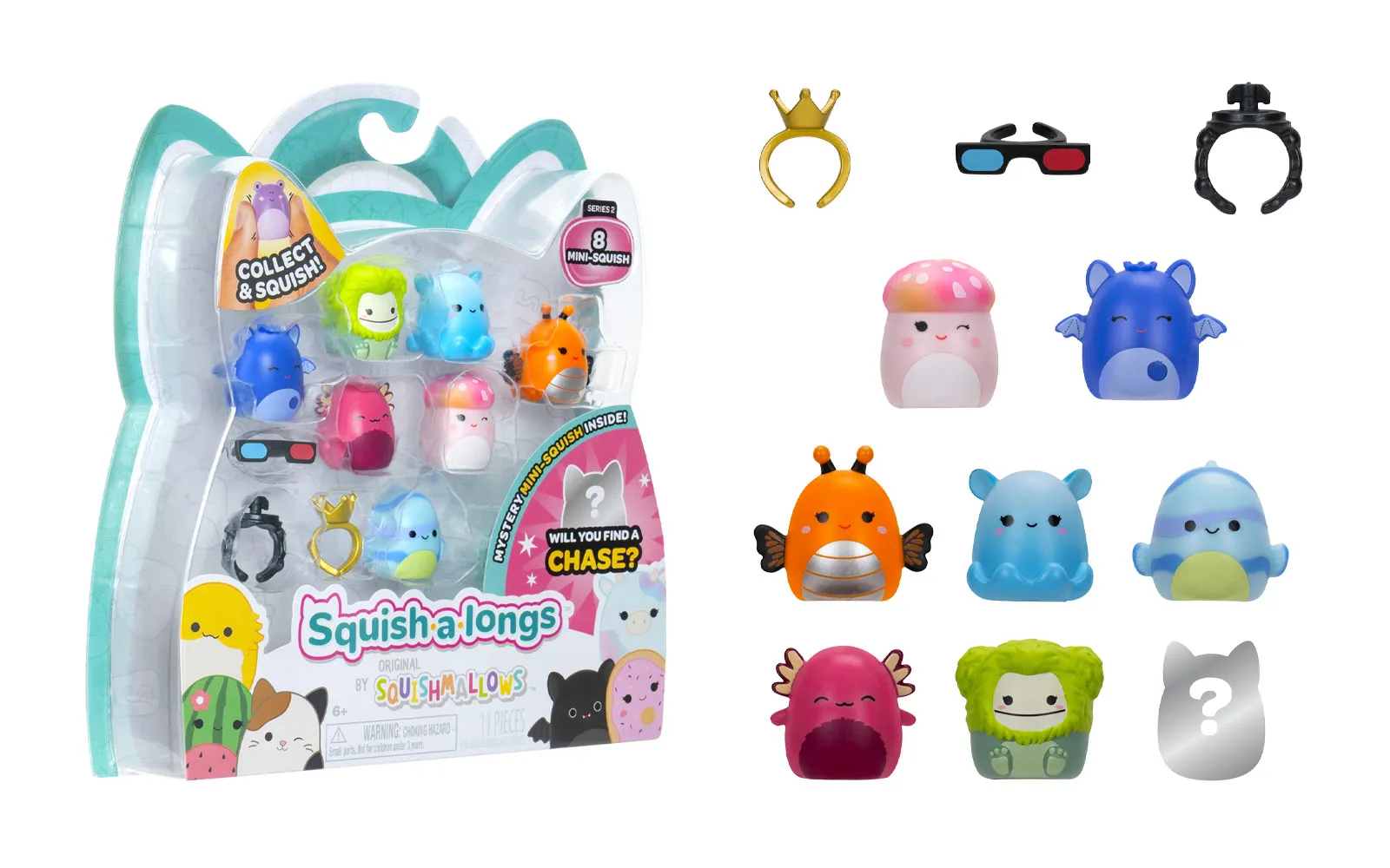 Odkrij zabavo z Squish A Longs – set 8 Mini-Squish figuric. Vključuje redke like, zabavne dodatke in več kot 140 različnih Mini-Squish za zbiranje, igro in menjavo!