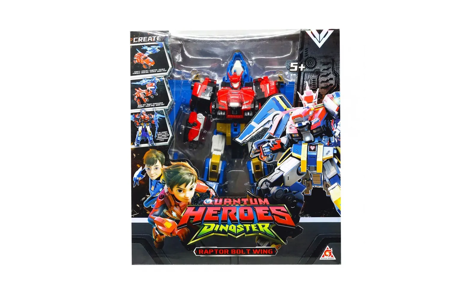 Odkrijte neverjeten svet dinozavrov z ekipo Dinoster! Skozi svoje dogodivščine štirje prijatelji premagujejo velike izzive, da bi zaščitili dinozavre. Dobrodošli v ekipi Dinoster!Raziščite svet dinozavrov in se podajte na pustolovščino z velikim raptorjem Bolt Wingom, Dinoster. Preučuj in reši dinozavre z velikim raptorjem Bolt Wingom! Je pogumen in se zlahka poveže z dinozavri. Transformacijski robot lahko postane dino tovornjak, dino robot ali 2-v-1, odvisno od vaše izbire. Z lahkoto lahko ga spremenite v avtomobil ali dinozavra.Robot ima tudi veliko gibljiv delov in je združljiv z ostalimi seti. Višina robota je 38,5 cm.
