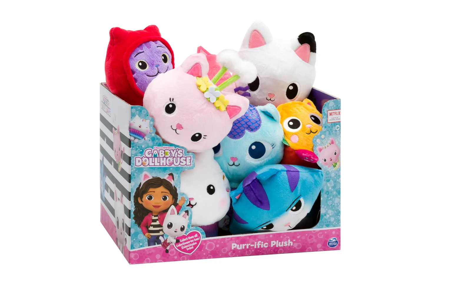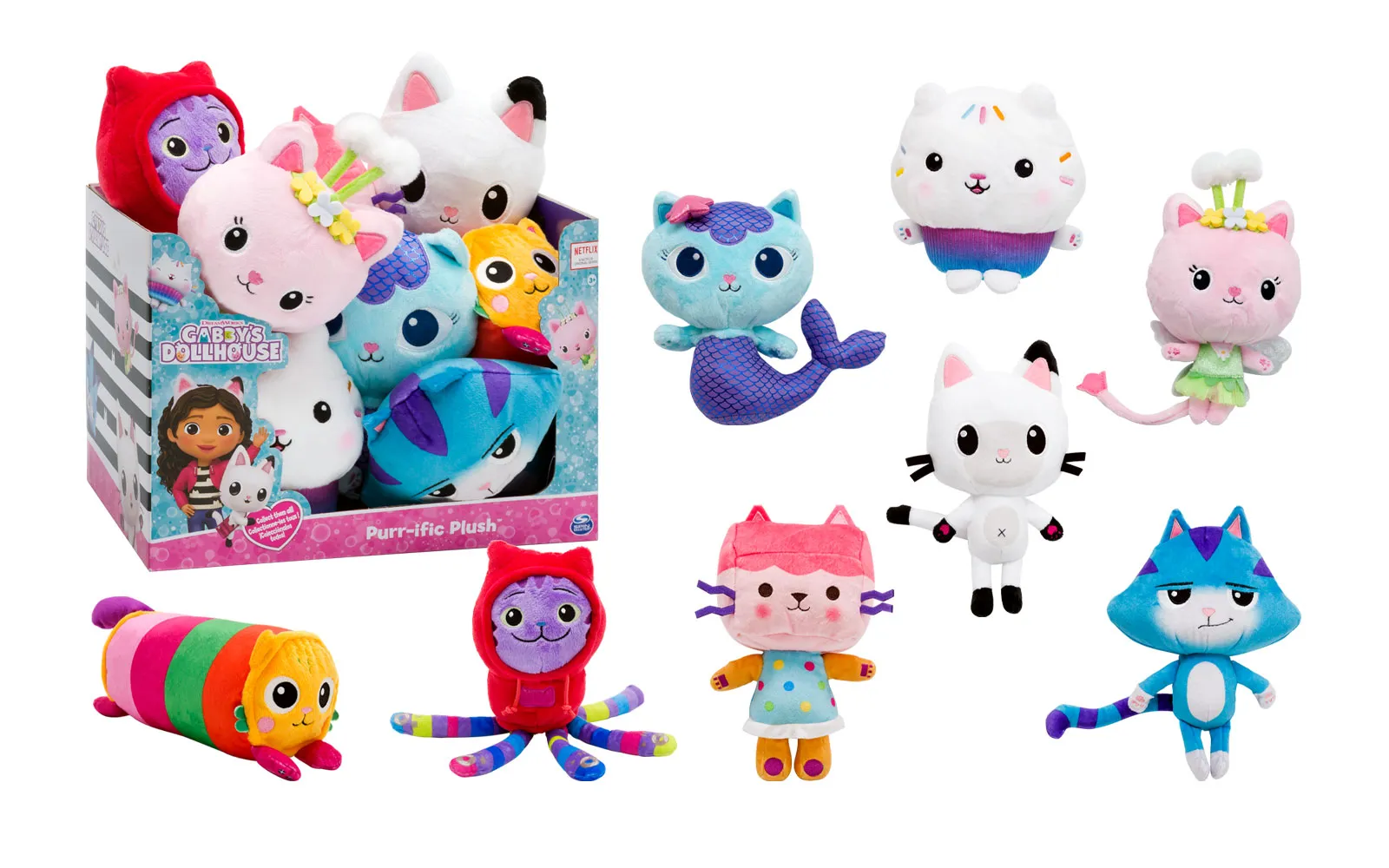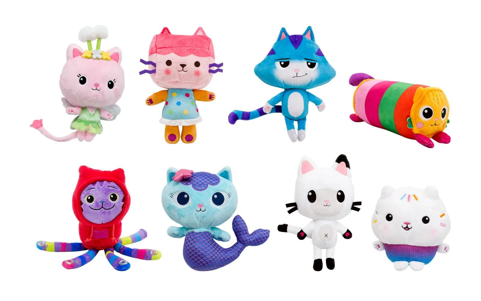 Plišaste figurice mačjih karakterjev iz serije Gabby's dollhouse. Te čudovite plišaste igračke imajo izjemno mehko barvito tkanino in vezene detajle. Na voljo kot: Pandy Paws, Cakey Cat, Kitty Fairy, CatRat, Pillow Cat, Daniel James-DJ Catnip, Mercat, Baby Box Cat. Igrača je priporočljiva za otroke od 3. leta starosti dalje.