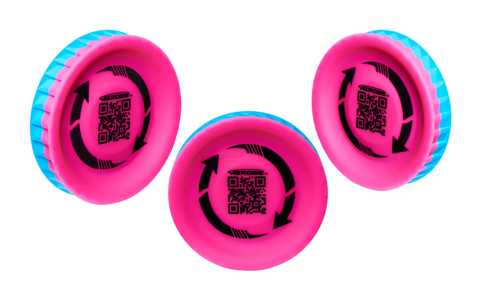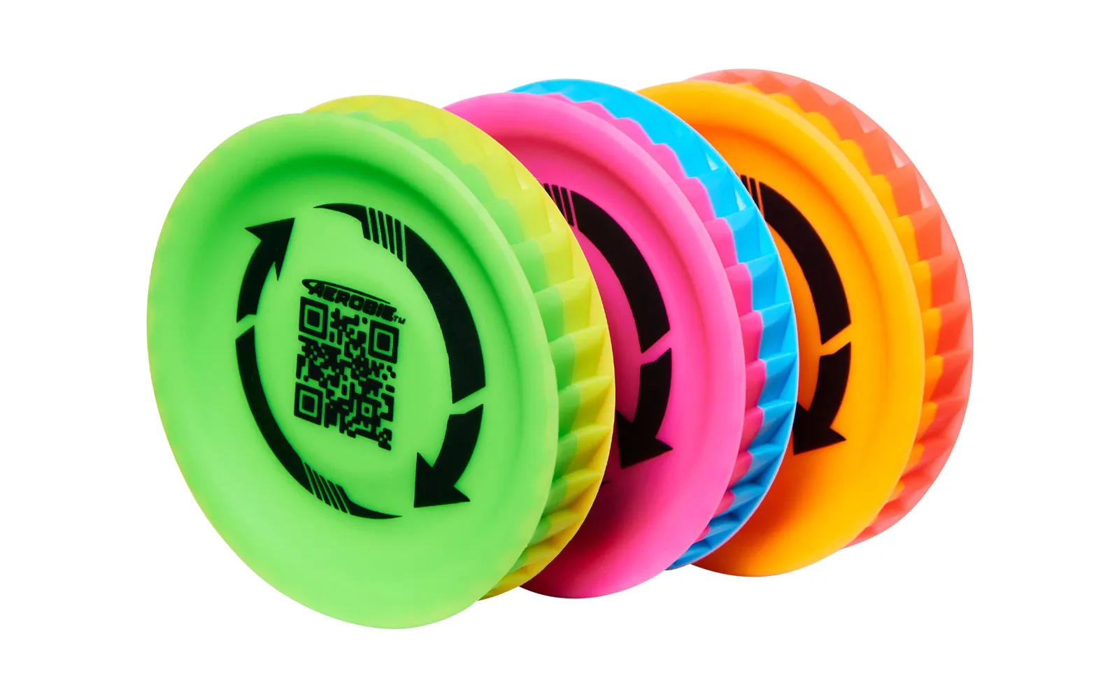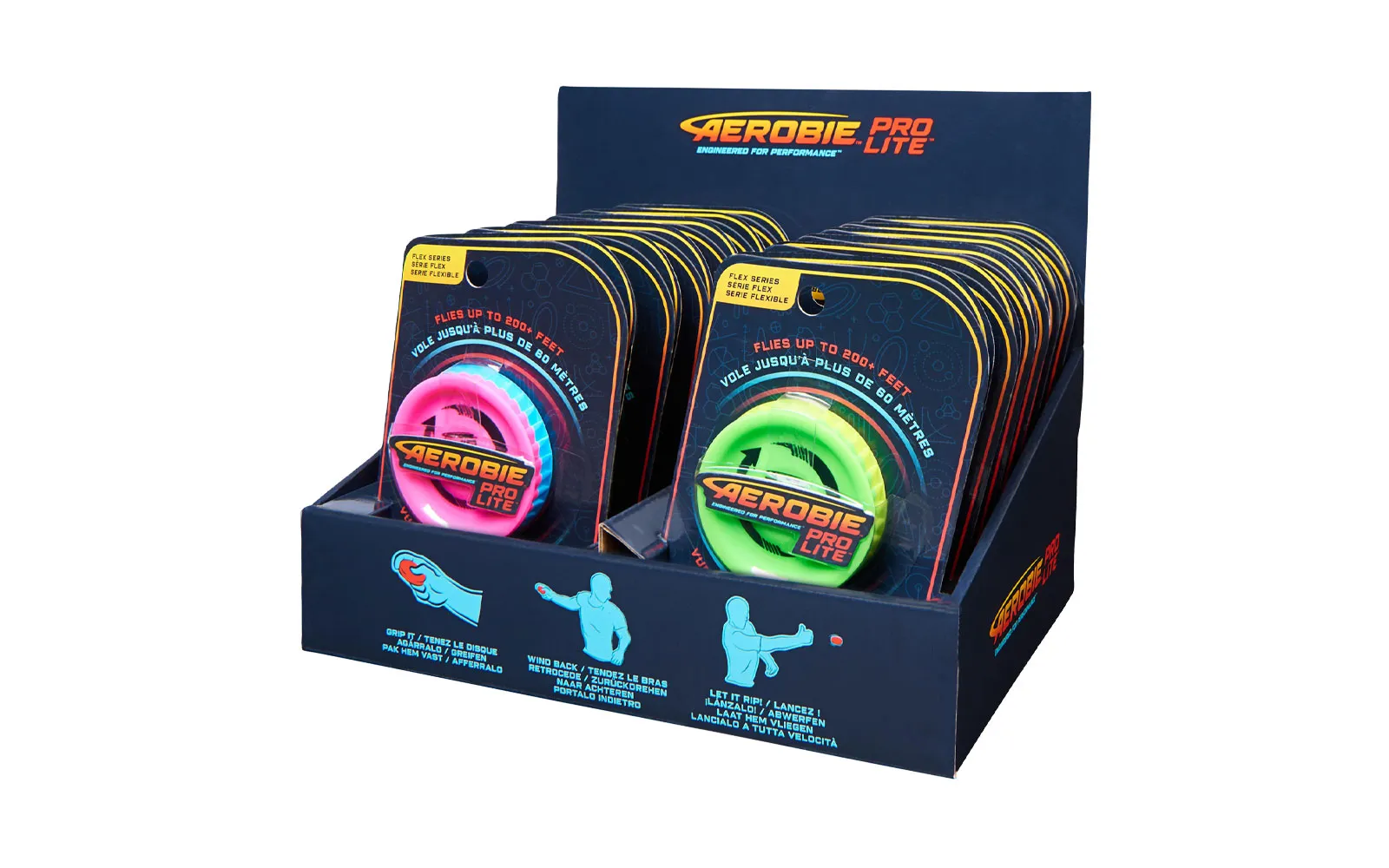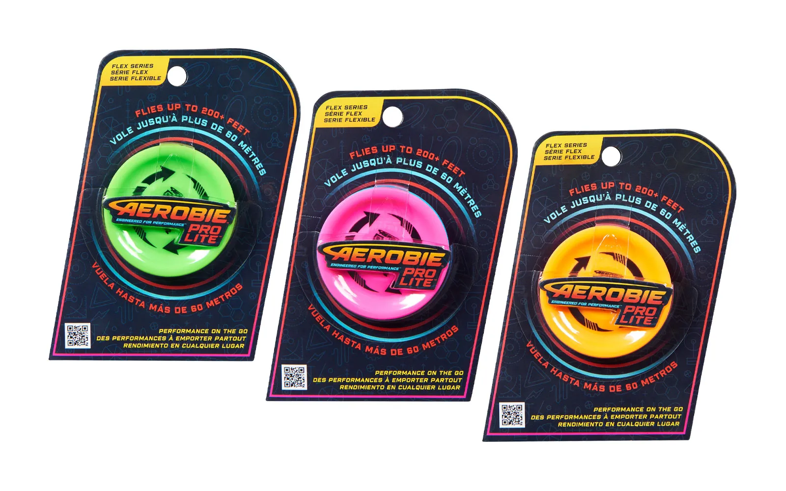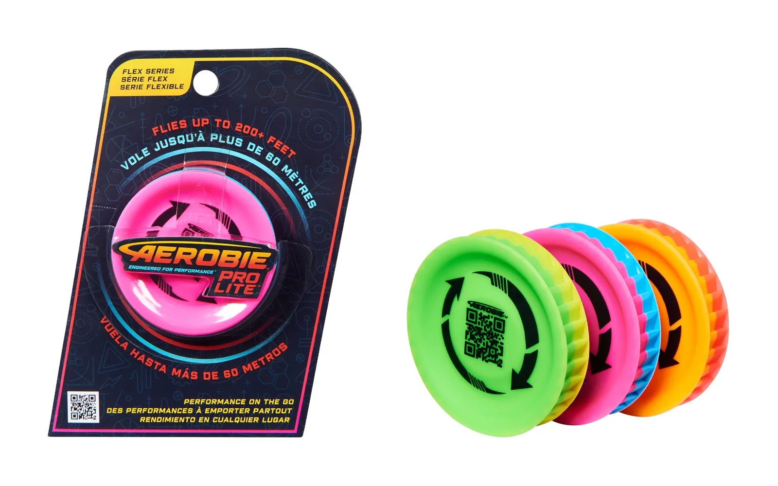 Leteči obroč Aerobie Pro Lite.Leteči obroč Aerobie Pro Lite ima odlične značilnosti letenja, leti naravnost in 2x dlje kot navadni leteči krožniki. Namenjen je metanju v manjših prostorih (parki, igrišča, plaže, kampi), priporočljiv pa je za otroke, starejše od 5 let. Zahvaljujoč svoji edinstveni konstrukciji obroč enakomerno pluje v zraku - kot da leti med nevidno plastjo ledu. Ta učinek deluje tudi pri različnih hitrostih metanja. Rob obroča je izdelan iz mehkejše gume, kar pomeni, da se lahko udobno ujame in se brez poškodb zlahka odbije od ovir. Igra z obročem je namenjena paru ali skupini ljudi - prepovedano pa je metati v oči, obraz drugih oseb ali živali. Mečite ga samo svojemu lovilcu v dobro osvetljenjem območju brez ovir. Ne mecite poškodovanega ali spremenjenega obroča, saj to lahko vodi v poškodbe.