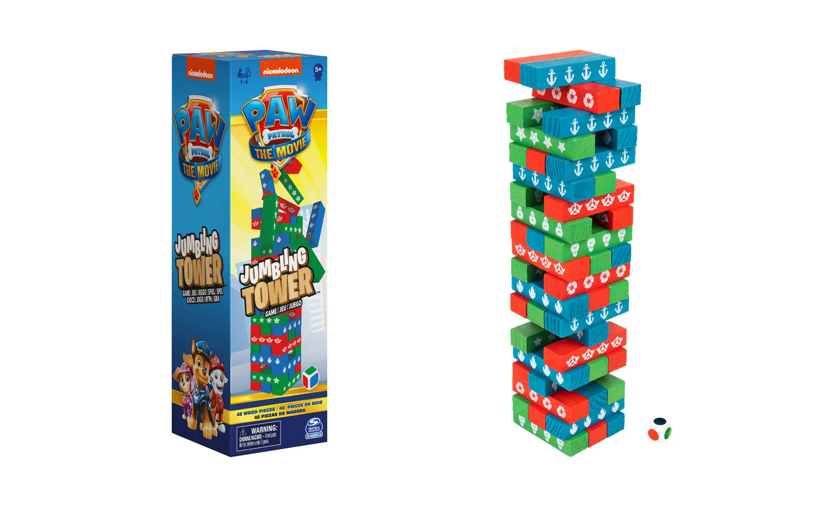 Odkar je animirana serija Paw Patrol – Tačke na patrulji prišla na televizijske zaslone, so otroci po vsem svetu dobili nove junake. Ekipa Tačke na patrulji/Paw Patrol skupaj vedno dokaže, da nobeno delo ni pretežko, hkrati pa otroke uči empatije, odgovornosti, prijaznosti in da ob težavah nikoli niso sami. Ekipo Paw Patrol / Tačke na patrulji sestavljajo: Chase, Marshall, Sky, Rocky, Rubble, Zuma in Everest / Maršal, Robi, Bron, Rok, Zuma in Sila. Zabavajte se z zabavno igro Paw Patrol Jumbling Tower,ki je kot nalašč za zabavne družinske večere. Stolp vsebuje 48 lesenih delov v raznovrstnih barvah ter kocko.