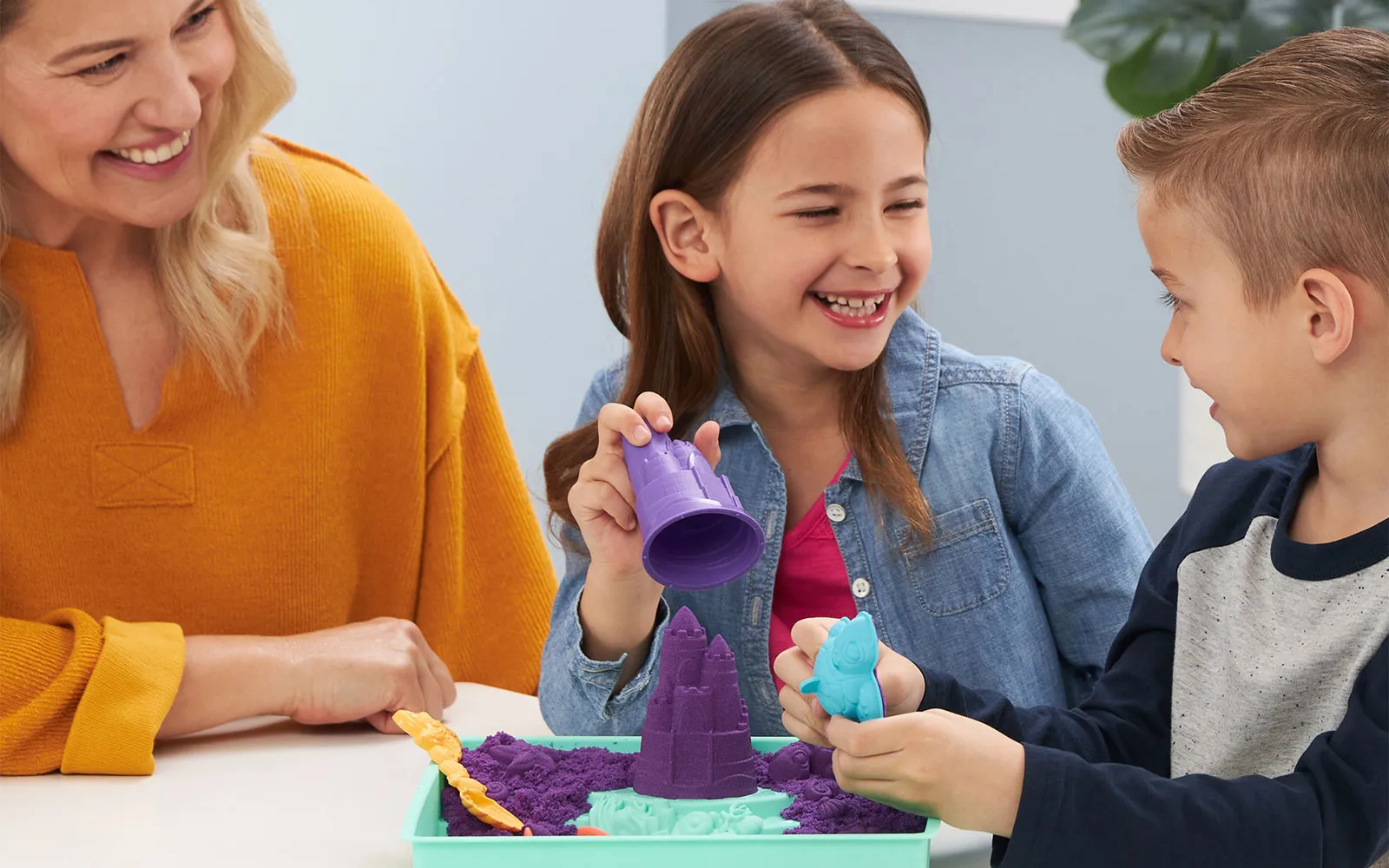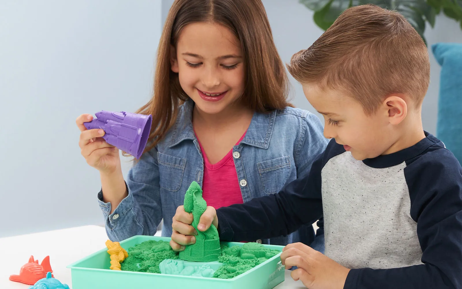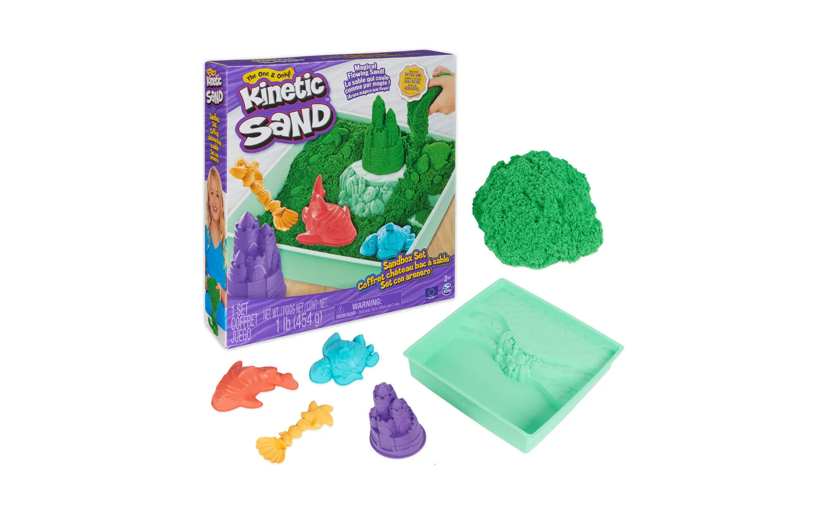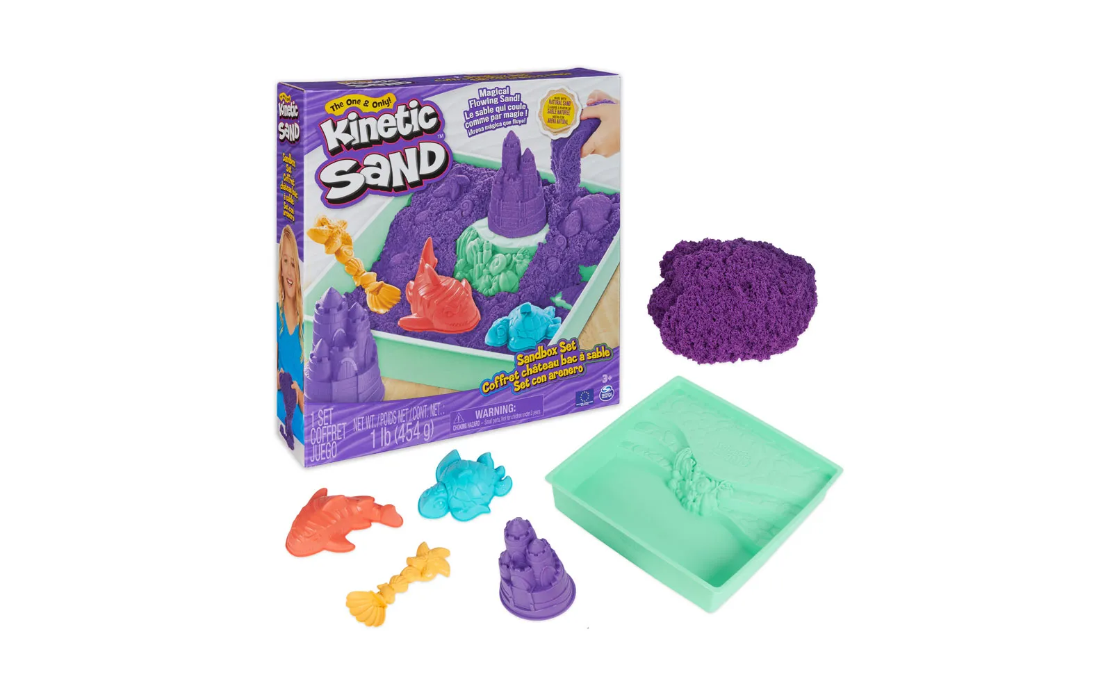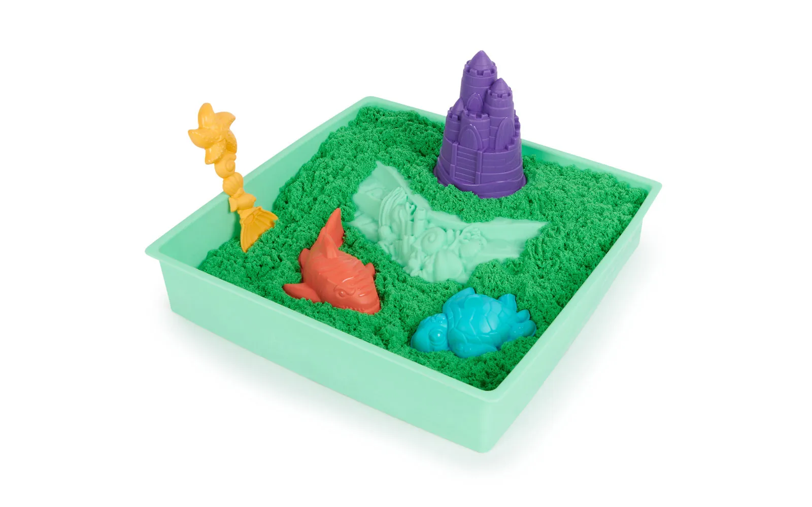 Kinetični pesek Kinetic Sand Sandbox by Spin Master je odličen za male oboževalce oblikovanja peska in izdelavo peščenih umetnin. Set vsebuje čaroben kinetični pesek, ki se enostavno oblikuje in iz njega lahko otroci ustvarijo čudovite peščene skulpture, gradove in oblike, prav tako pa vsebuje podlogo, na kateri otroci lahko ustvarjajo svoje umetnine in različno orodje za oblikovanje. Kinetični pesek je nadvse čaroben in bo vaše otroke naravnost očaral, saj je nelepljiv in se ne izsuši, zato je možnosti za igro in ustvarjanje neskončno! Spodbuja otroško kreativnost in omogoča, da otroci naredijo svoji domišljiji pustijo prosto pot. Kinetični pesek je narejen iz 100% naravnega peska (brez dodatkov) in je brez pšenice, glutena in kazeina. Mivka kinetičnega peska je proizvedena na Švedskem. Set vsebuje: 1 kinetični pesek v vijolični, modri ali zeleni barvi, 1 podlogo za igranje ter različna orodja za oblikovanje.Igrača je primerna za otroke od 3. leta starosti dalje.