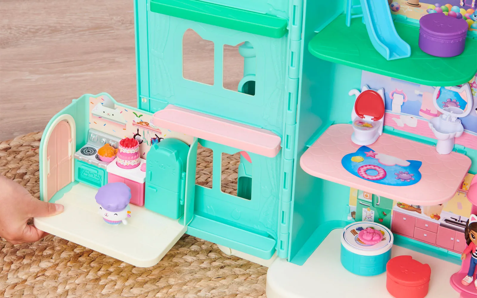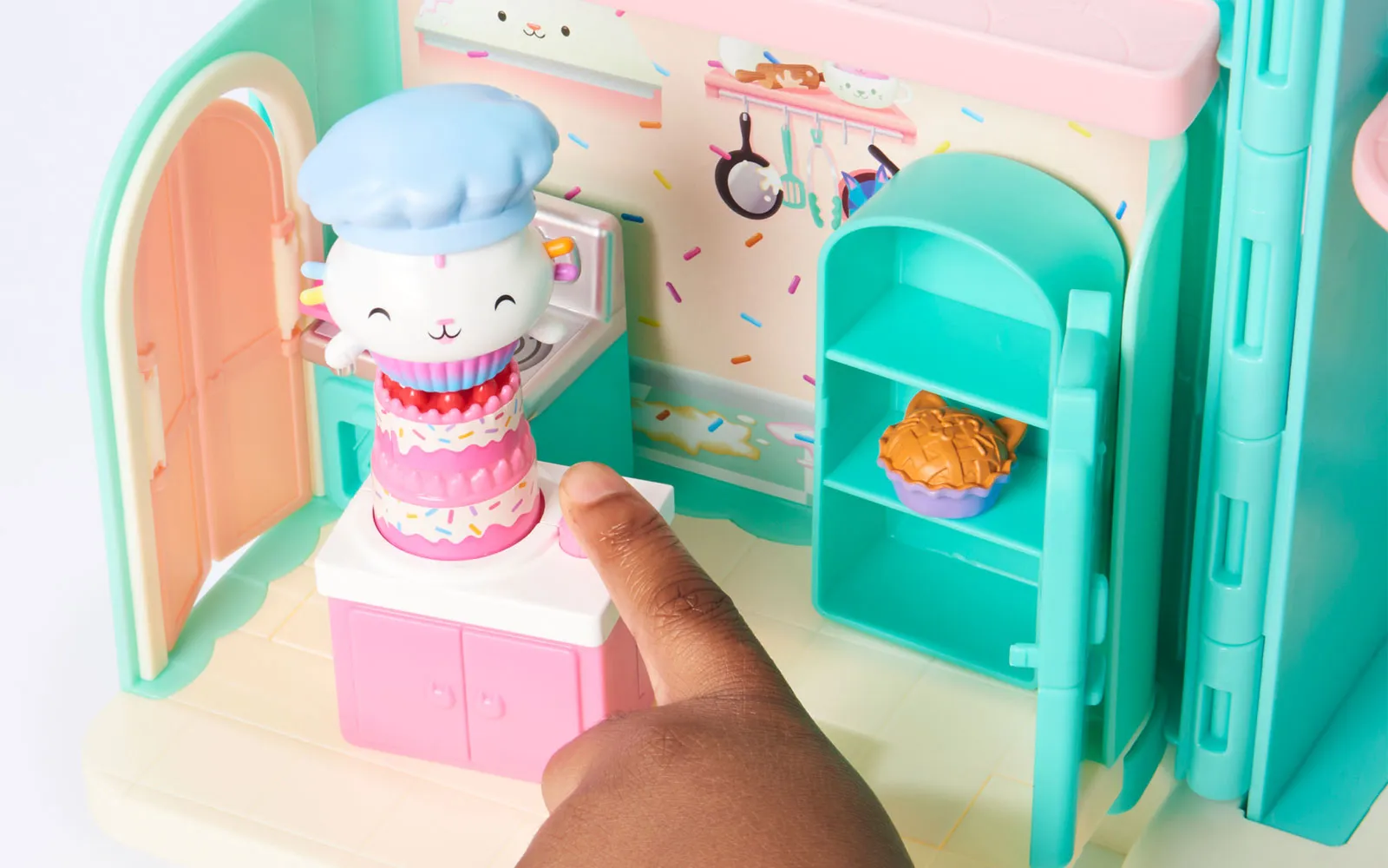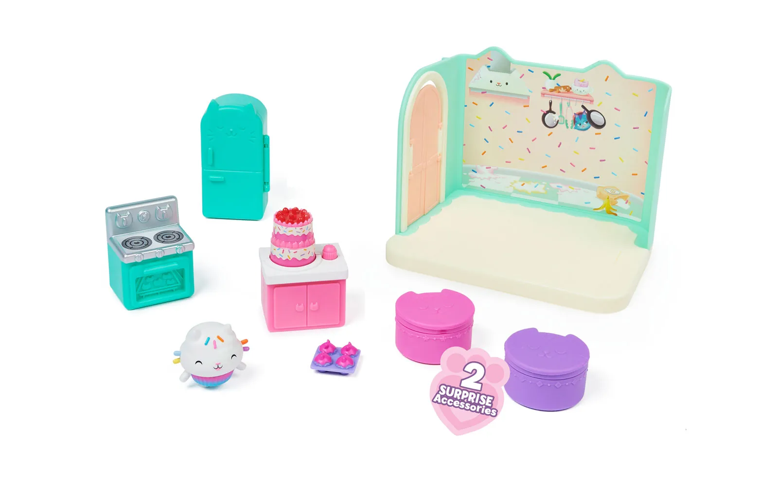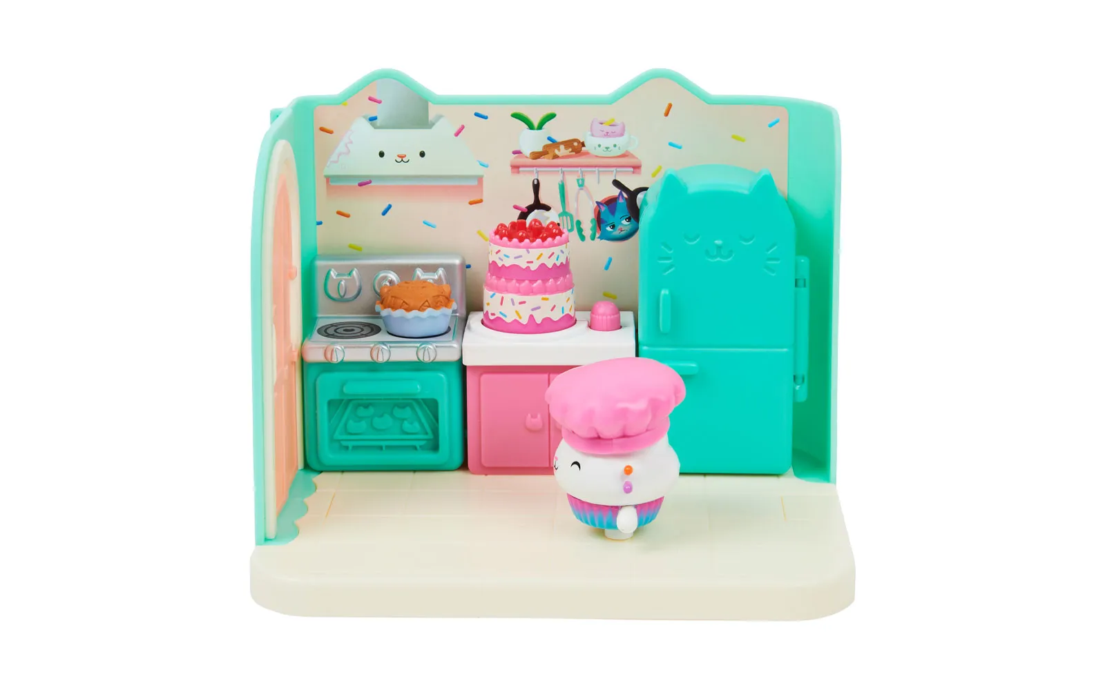 Vstopite v čudovit svet risanke Gabby’s dollhouse in odkrijte ljubke mačke in barvite čarovnije!Set vsebuje kuhinjo animirane serije Gabby's dollhouse.