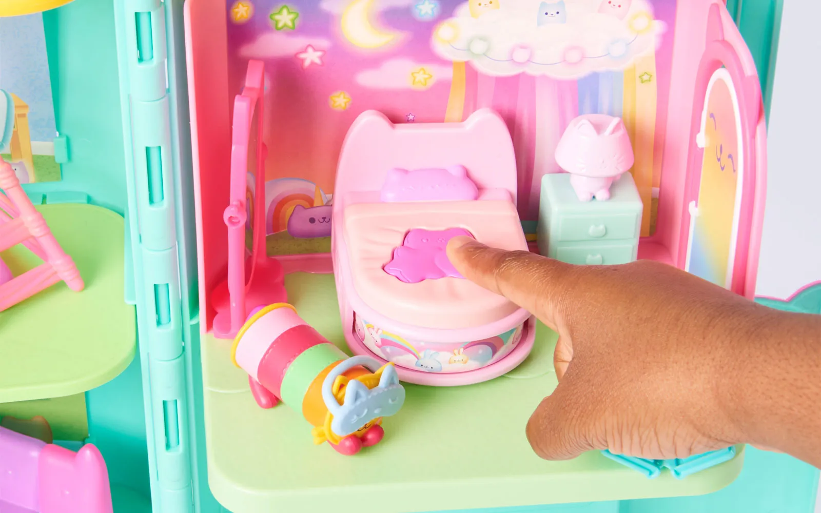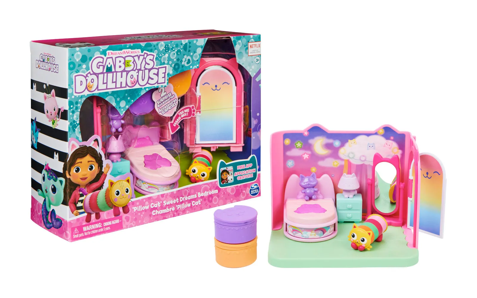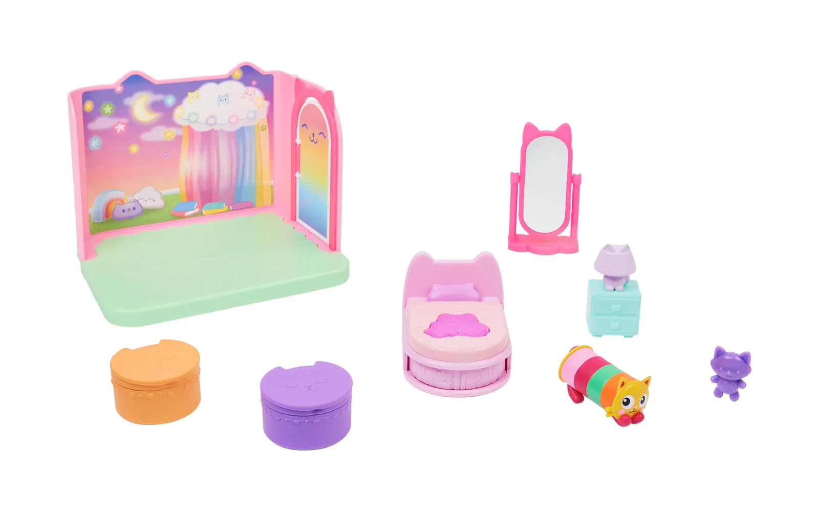 Vstopite v čudovit svet risanke Gabby’s dollhouse in odkrijte ljubke mačke in barvite čarovnije!Set spalnico animirane serije Gabby's dollhouse.