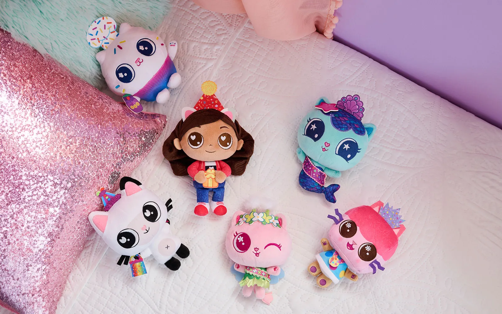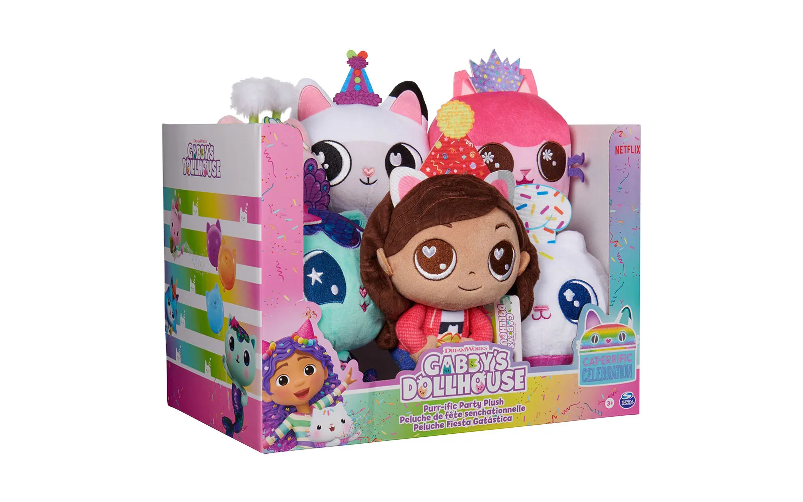 Plišasta figura Party, Gabby's dollhouse, Spin master. Figura je kot nalašč za vse otroke, ki obožujejo animirano serijo Gabby's dollhouse. Na voljo je več različnih figuric - Baby Box, Cakey, Kity Fairy, Mercat, Pandy Paws, Gabby,...