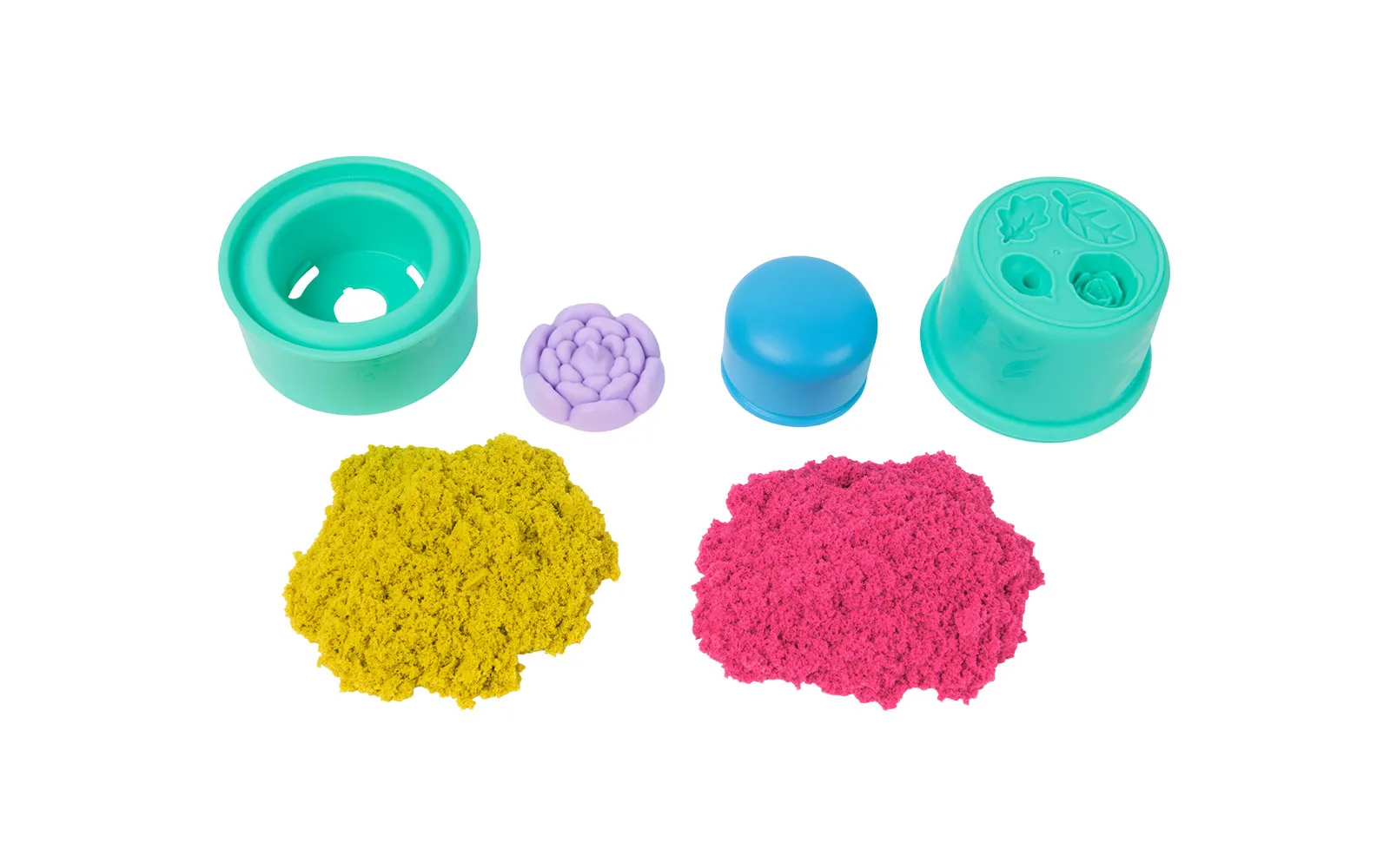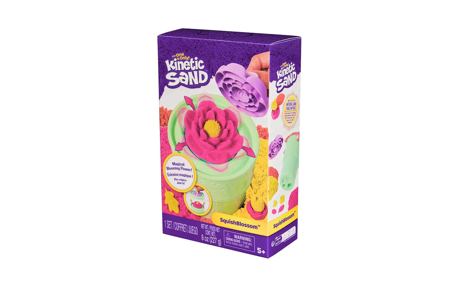 S SquishBlossom setom kinetičnega peska otroci odkrivajo čarobni svet cvetočih rož! Set vključuje 227g živahnega roza in rumenega kinetičnega peska, cvetlični modelček, lonček in dodatne oblike za ustvarjanje listov, čebel in rož. Preprosto nanesite pesek na peno, pritisnite in uživajte v čarobnem razcvetu cvetov. Otroci lahko mešajo barve, da ustvarijo edinstvene odtenke. Pesek se enostavno čisti, nikoli ne presahne in spodbuja fine motorične sposobnosti ter ustvarjalnost. Idealen je za darilo ob rojstnih dnevih in posebnih priložnostih!