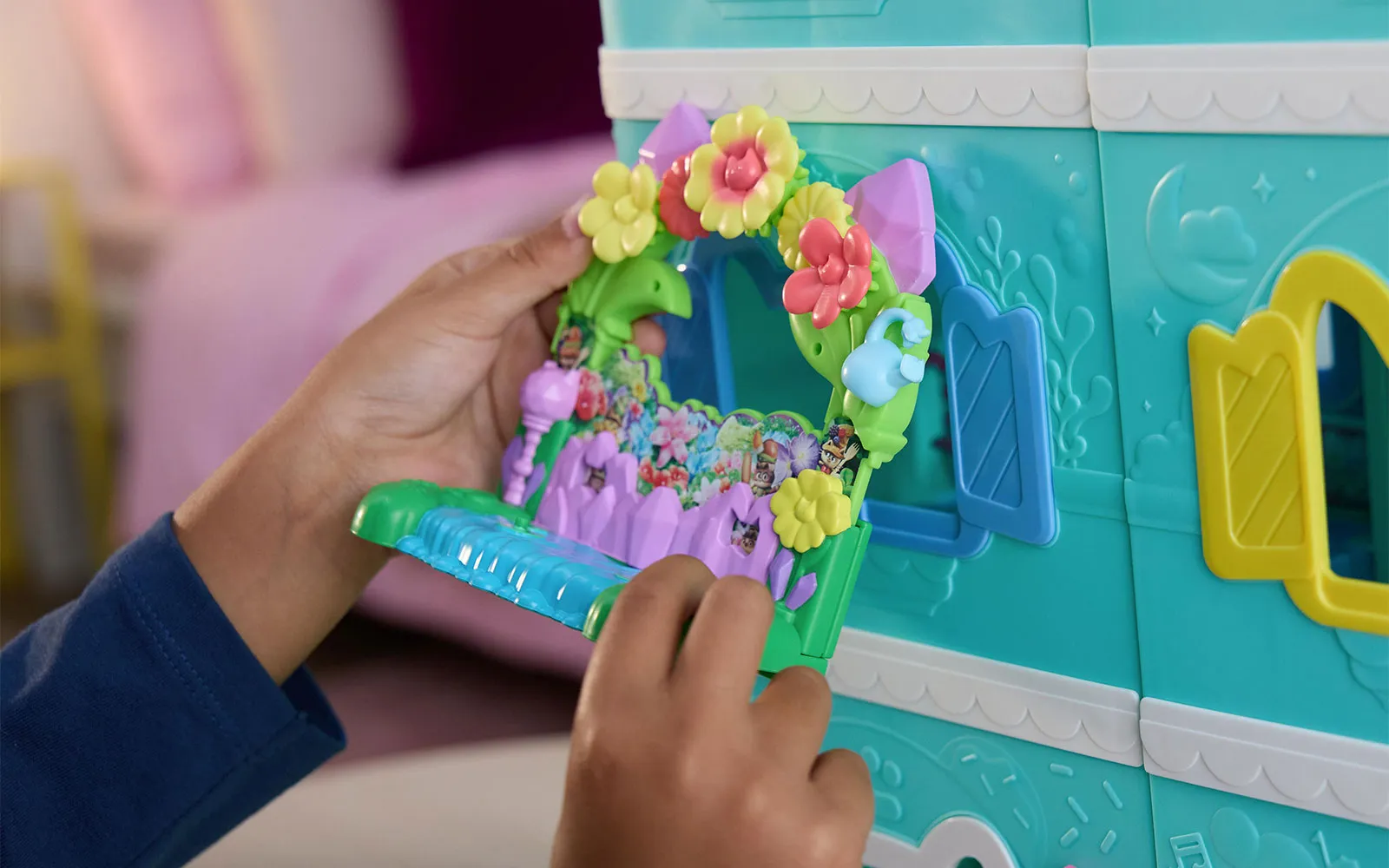 Balkon movie, Gabby's dollhouse. S setom balkončka spoznate nove junakce filma Gabby's dollhouse, hkrati pa imajo balkončki različne premikajoče se elemente. Izbirate lahko med Aquarium world, Crystal Garden World ali Confectionary World. Z balkončki si lahko posodobite svojo hišico Gabby's dollhouse.