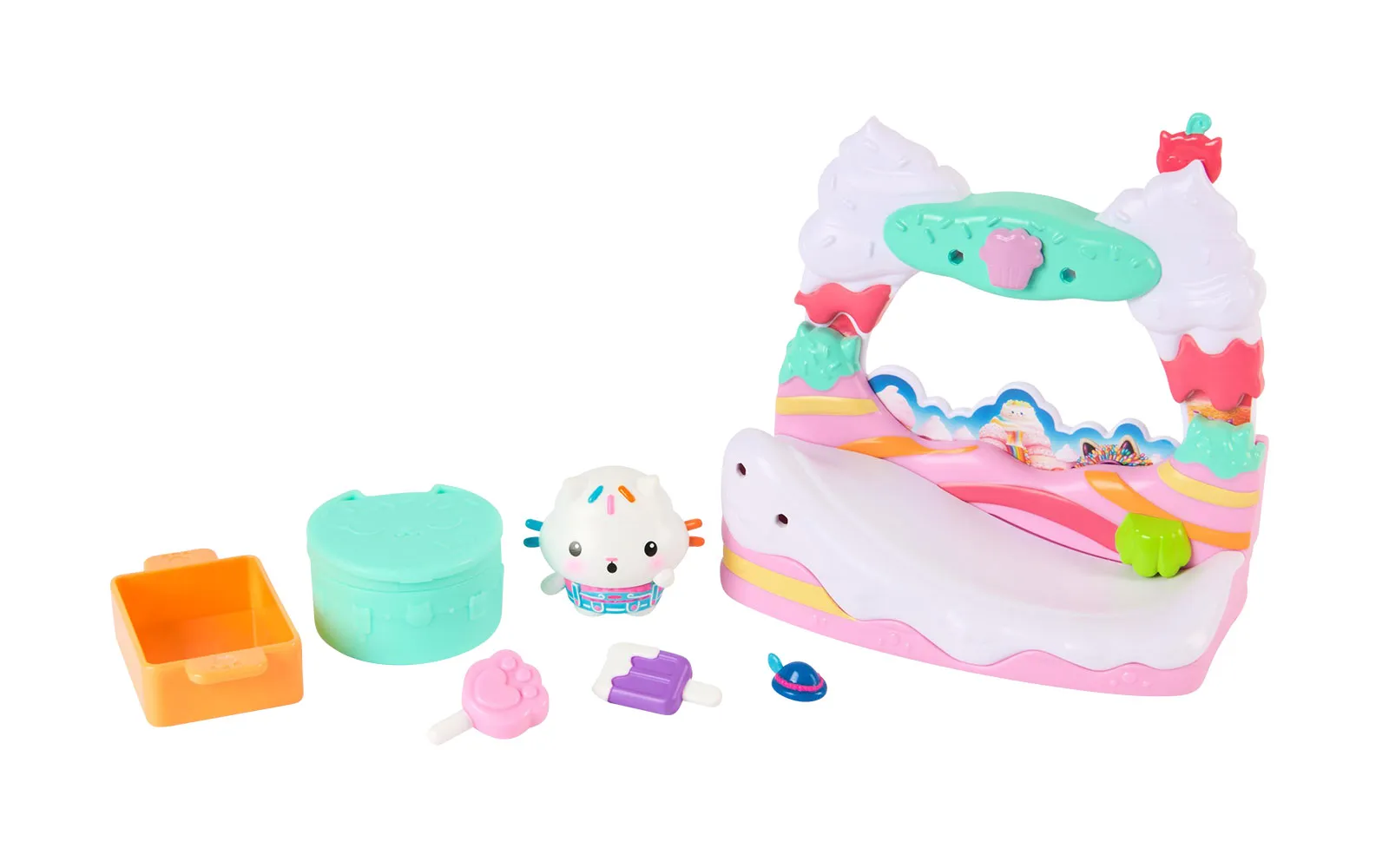 Vstopite v čudovit svet risanke Gabby’s dollhouse in odkrijte ljubke mačke in barvite čarovnije!Pridružite se mačji navdušenki Gabi in njeni pomočnici Pandošap v svetu zabavne igre!Tu so Gabi, Pandošap, Pandi, Vila mucka, Mucon, Škateljca, Tortek, Morska mucka, Avtjuša, Dremucka, Dj Mijav, Artur, Peter, Puhica Puhek, Flori, Škatolina, Bučko, Cukerc, Pekica, Kosmiček, Tortina, Papiga Pika, Cofka, Dj Komet, Lili-LU in Upsi, ki te čakajo, da se jim pridružiš na zabavnih dogodivščinah.Originalna imena likov v Gabby’s dollhouse so Gabby, Pandy Paws, Pandy, Kitty Fairy, Catrat, Baby Box, Cakey, MerCat, Carlita, Pillow Cat, Dj Catnip, Arthur, Pete, Fluffy Flufferton, Floyd, Mama Box, Pumpkin, Flakey, Bakey, Marshapan, PaddyCake, Parrot, Eggy, Dj Comet, Luli-Loo in Whoopsie.