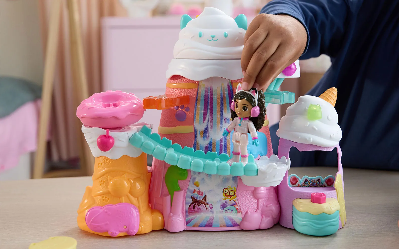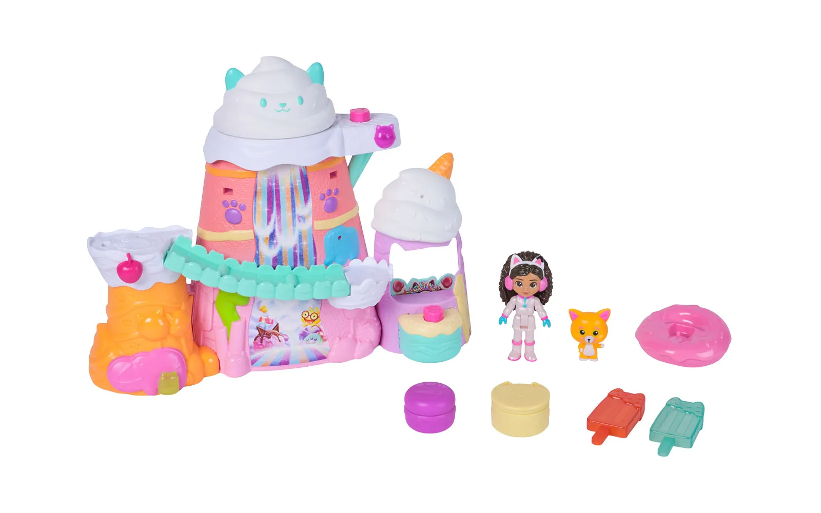 Movie sweet set, Gabby's dollhouse.Set Gabby's Dollhouse Sprinkle Party Sweet Treat Set vključuje 15 različnih kosov, vključno s skodelicami, krožniki, žličkami, pladnjem, sladkorjem, penastimi bomboni, sadjem in smetano. Otroci lahko ustvarijo sladke zabave, napolnijo skodelice s toplo čokolado, dodajo bombone in sadje ter zavrtijo smetano za razkritje okusnega peciva. Komplet spodbuja domišljijo in igro vlog, kar omogoča ustvarjanje različnih scenarijev.