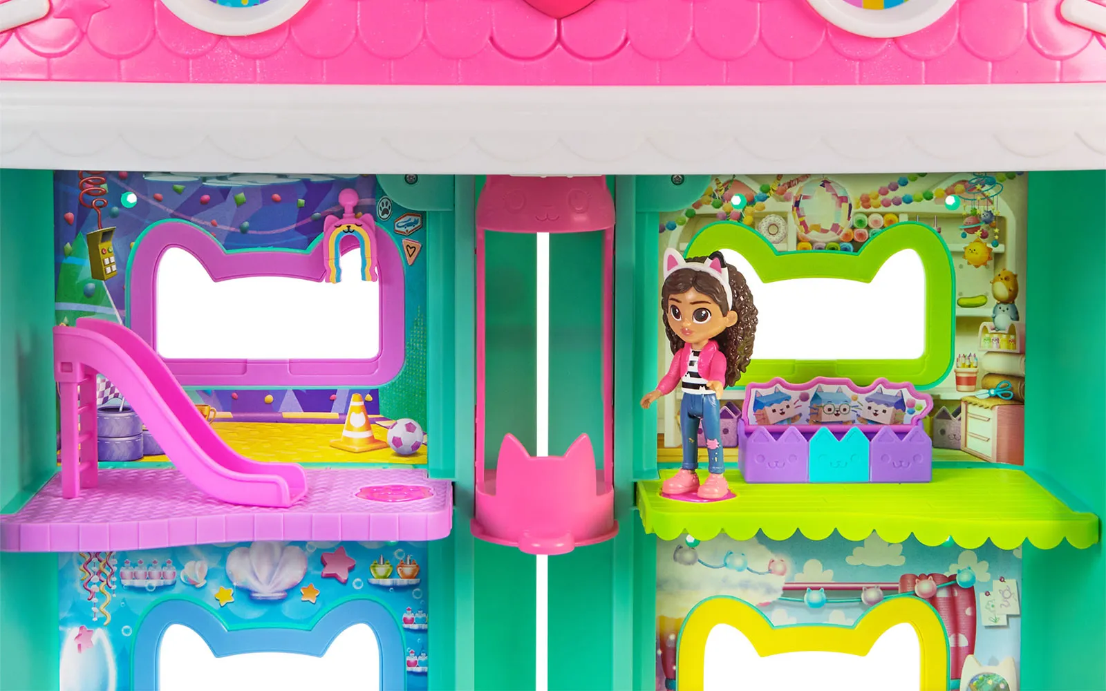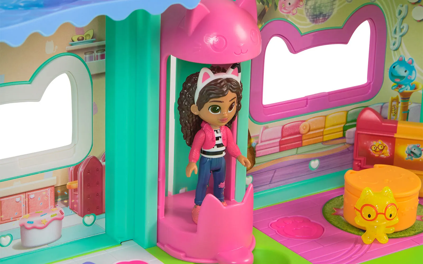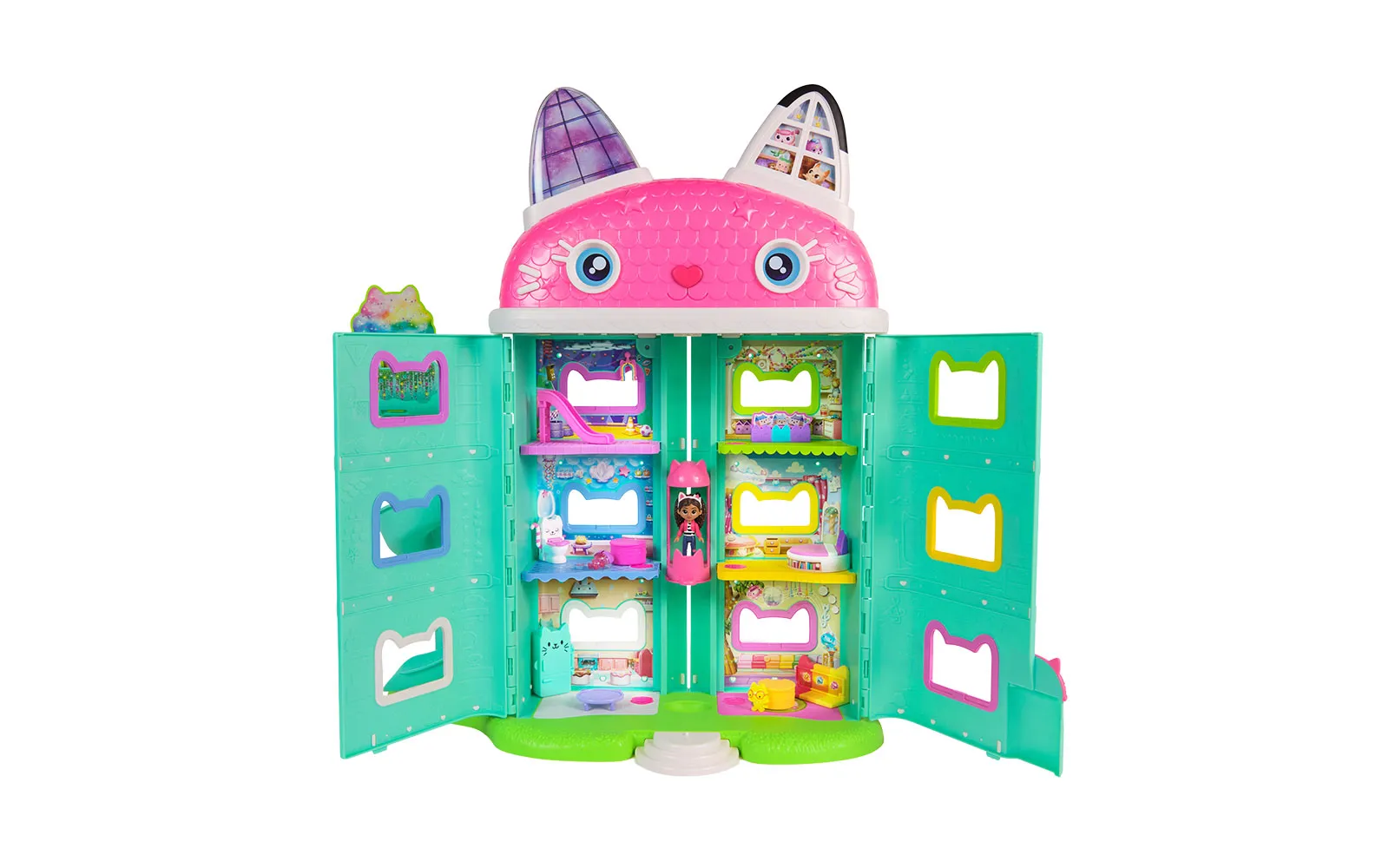 Vstopite v čudovit svet risanke Gabby’s dollhouse in odkrijte ljubke mačke in barvite čarovnije!Set vsebuje interaktivno mačjetastično hišico.