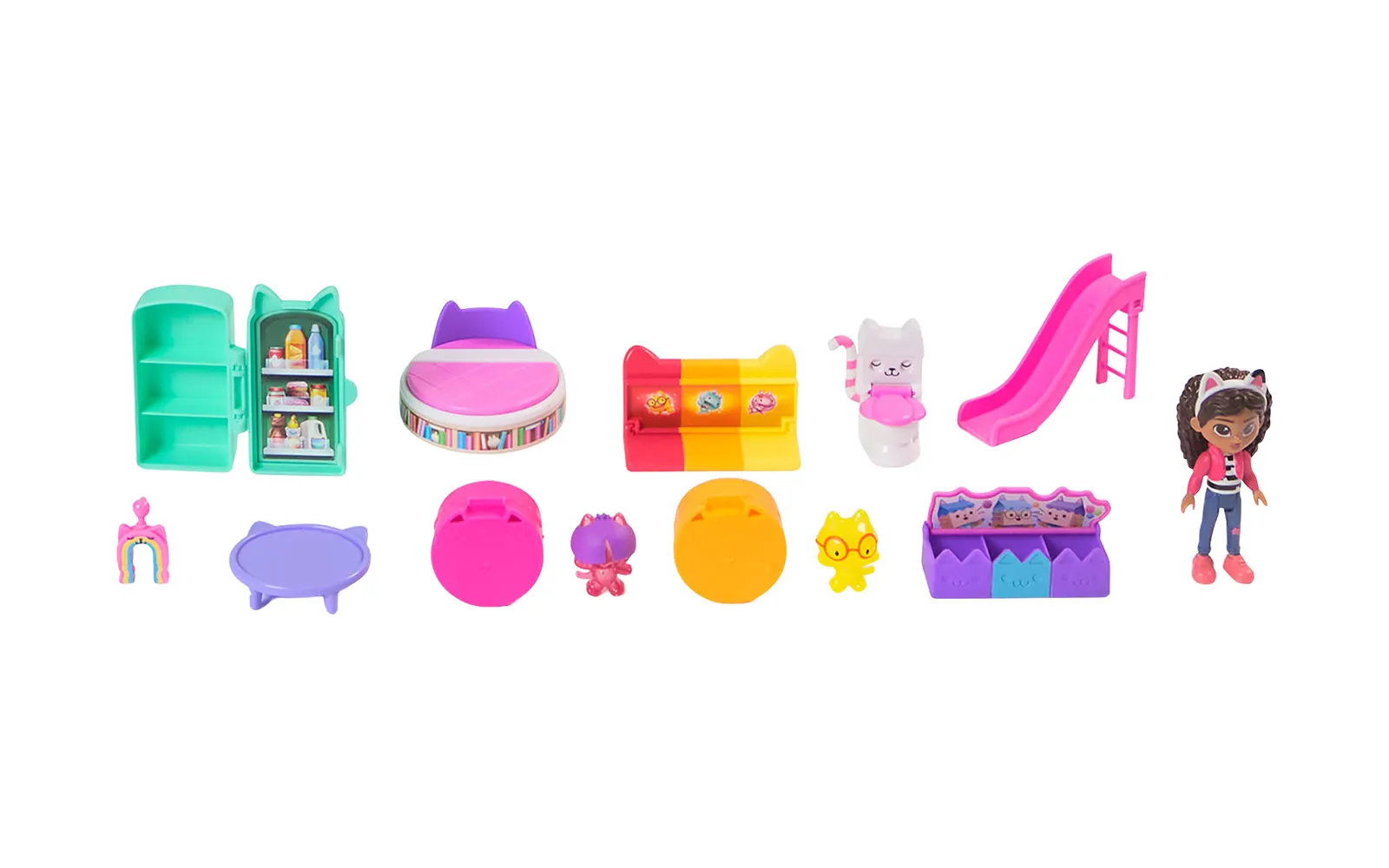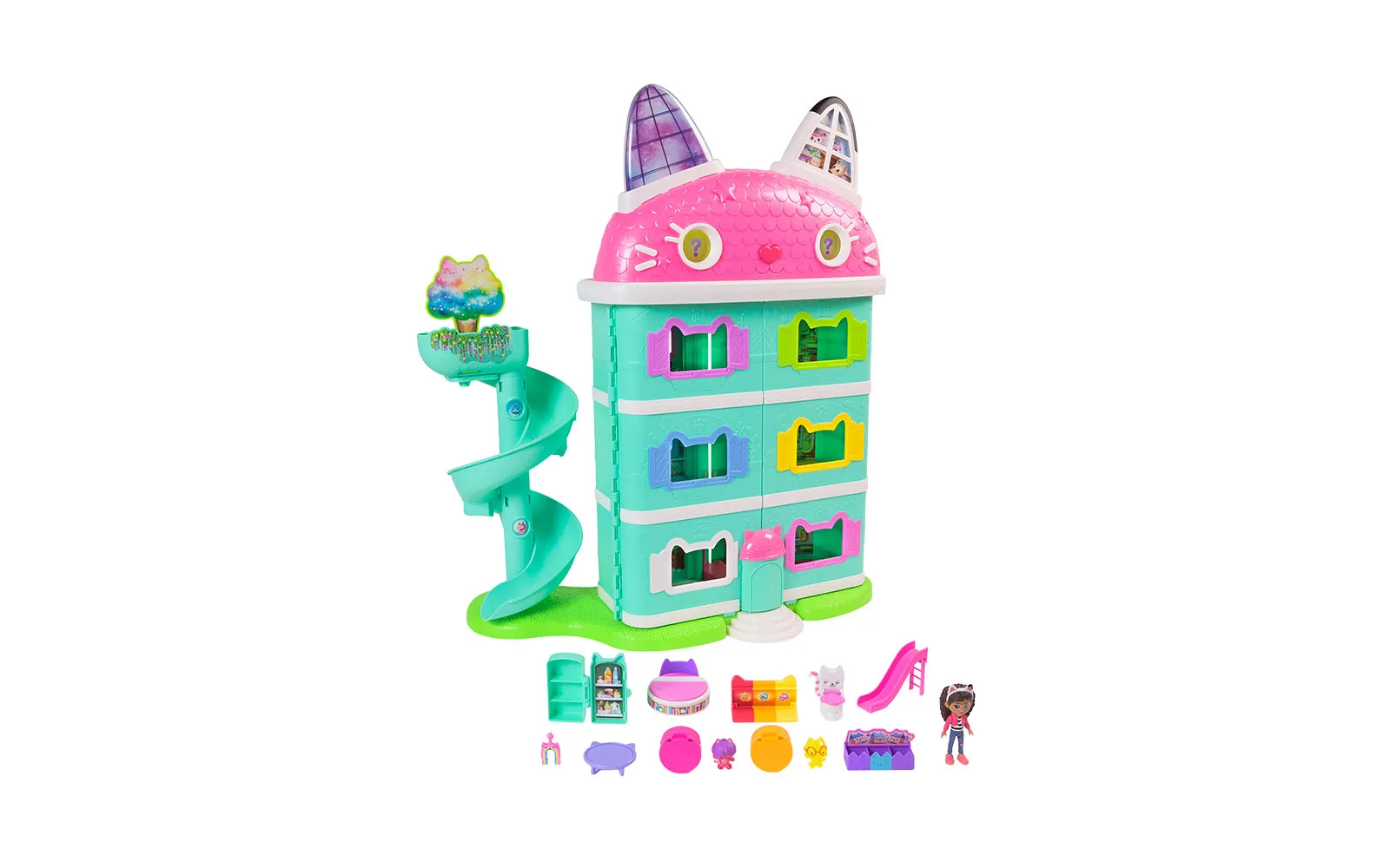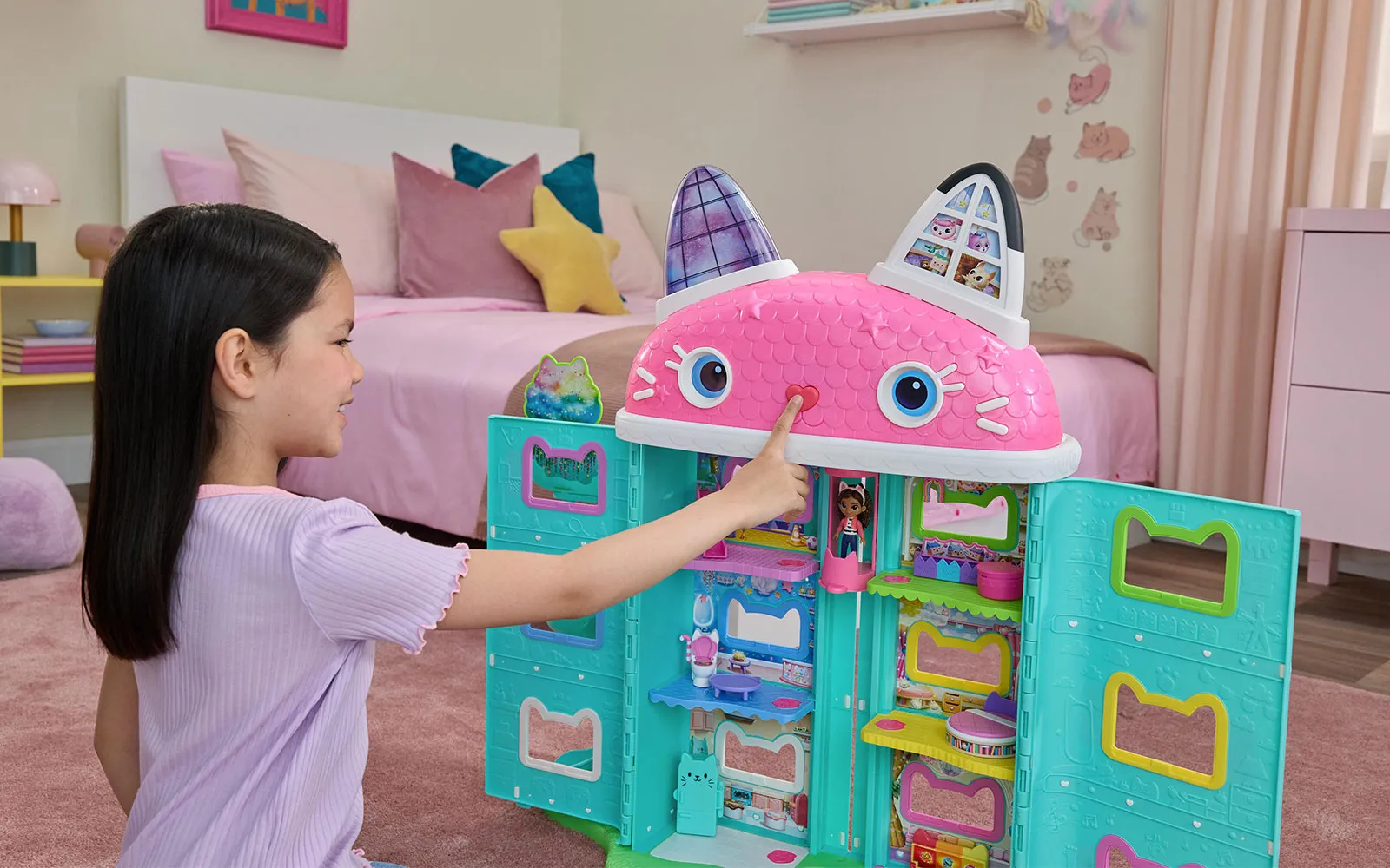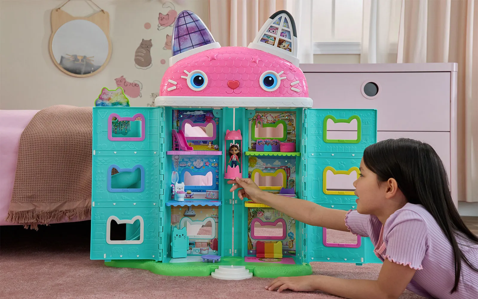 Vstopite v čudovit svet risanke Gabby’s dollhouse in odkrijte ljubke mačke in barvite čarovnije!Set vsebuje interaktivno mačjetastično hišico.