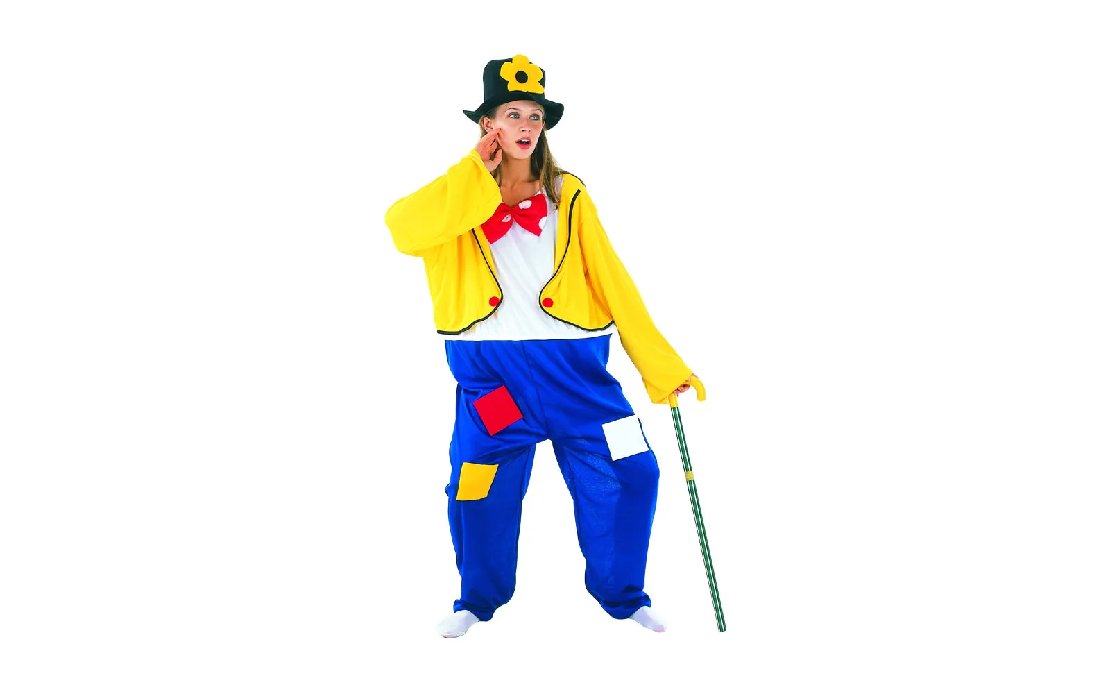 Vsaj za en dan pusti resen obraz doma ter si nadeni norčavo nagajiv izraz na obraz s pustnim kostumom klovnesa za odrasle univerzalne velikosti, ki vsebuje obleko, klobuk in pentljo. Nogavice in palica niso priloženi. Sestava: 100% POLIESTER