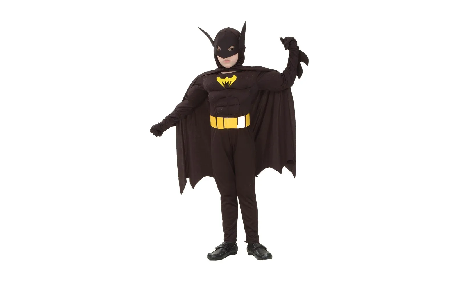 Maska čez oči, mišice na prsih. Z otroškim pustnim kostumom mišice, ki vsebuje obleko z mišicami, pas, kapuco in ogrinjalo, boš osvojil pustno zabavo. Rokavice in čevlji niso priloženi. Velikost S (110-120 cm), M (120-130 cm) in L (130-140cm). Sestava: 100% POLIESTER