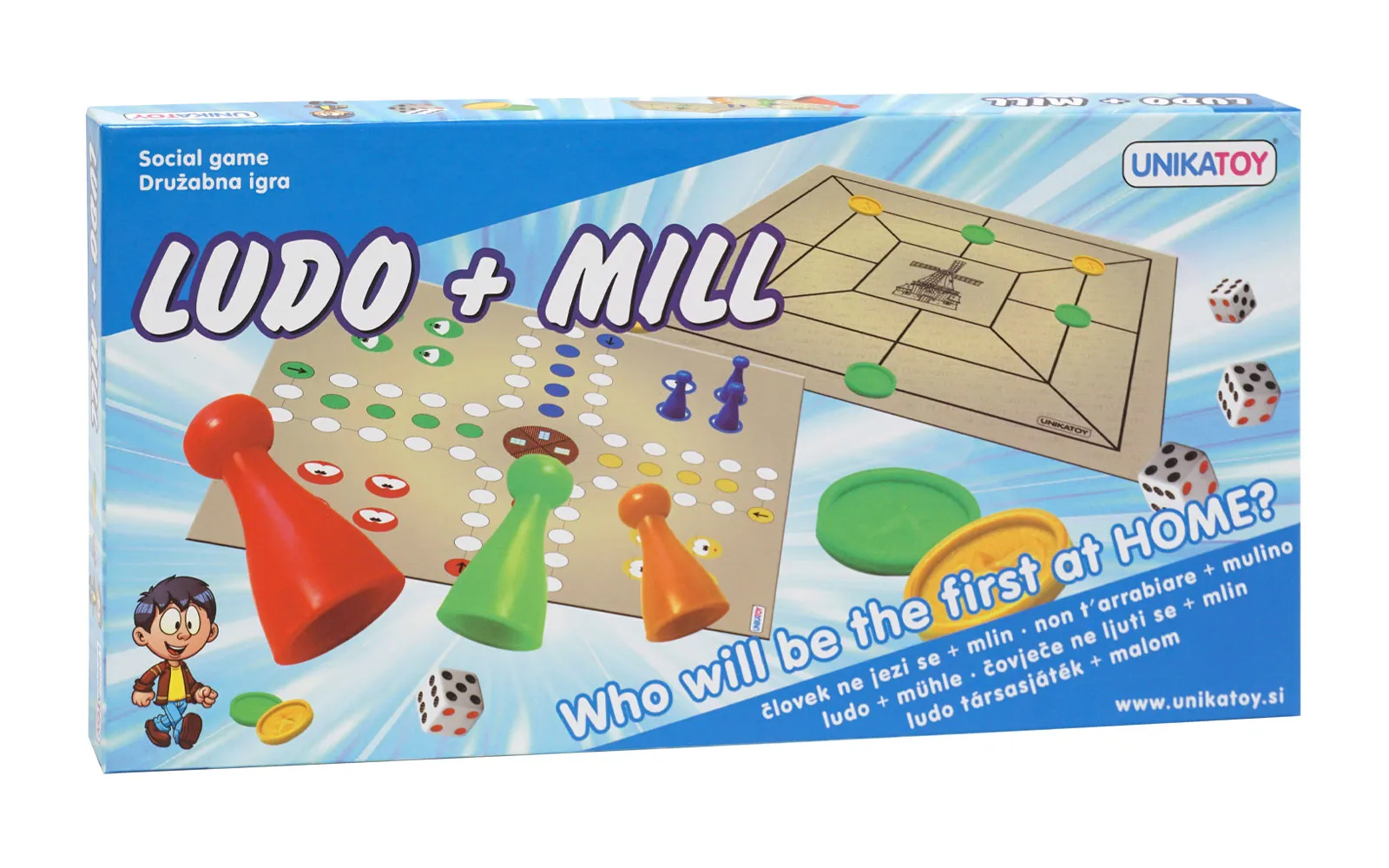 Dve igri v eni - družabni igri človek ne jezi se ter mlin za veselje, zabavo vseh vas starejših od treh let. Človek ne jezi se je igra za dva do štiri igralce, mlin pa je razvedrilna igra za dva igralca.Vrzi kocko, premakni figurico, pripelji prvi vse 4 figurice na cilj ali polagaj plošček in poskusi zgraditi mlin.