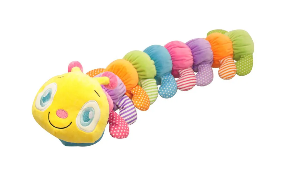Plišasta raznobarvna gosenica dolžine 72 cm z 9 pari nog ter velikimi modrimi očmi.